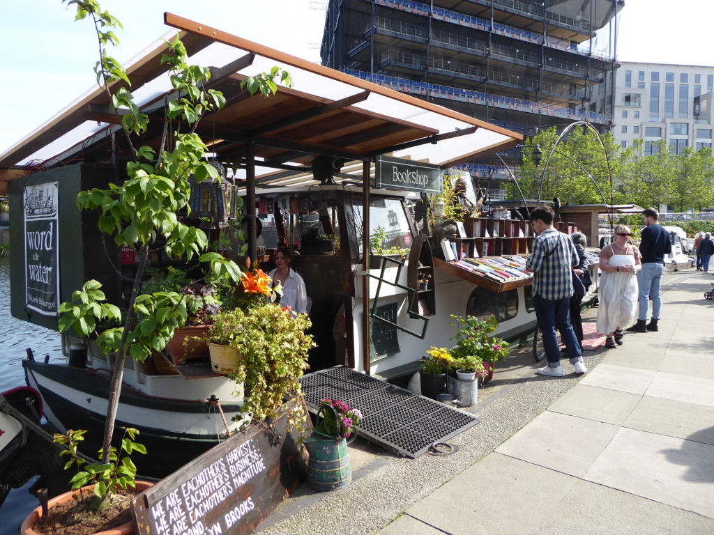 Incontriamo anche una piccola e bellissima libreria che abita un fiorito barcone ormeggiato lungo il canale ; sul tetto un piccolo complesso ci delizia con musica dal vivo (Words on the water). Sosta per una afternoon chamomille (ottima) servita in bellissima tazzina e teiera di vetro che vorrei (ma non posso) rubare, anche per non dare un cattivo esempio ai ragazzi.
