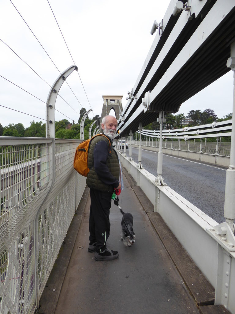 Giovedì 1 giugno 2023 . Abbiamo 5 ore di sosta (gratuita) consentita dopo le 9 : le utilizzeremo per una visita veloce alla città. Abbiamo verificato che – essendo un diesel euro 6 – non dobbiamo neppure pagare la tassa per l’ingresso nella Clean Air Zone di Bristol. Iniziamo dal Clifton Village affollato di negozietti particolari e dal bellissimo Clifton Bridge, il ponte sospeso costruito da Isambard Kingdom Brunel, che attraversa la profonda vallata scavata dal fiume Avon ed è diventato il biglietto da visita della città : vertiginoso, ventosissimo e leggermente traballante. All’ingresso del ponte, e su ogni pilastro, il numero telefonico di aiuto dei Samaritans rivolto agli aspiranti suicidi. Il passaggio pedonale è gratuito, quello in auto prevede un piccolo pedaggio (1 sterlina). Per le ultime foto panoramiche saliamo all’ Observatory of Clifton (ex), oggi sala bar/ristoro/ricevimenti.