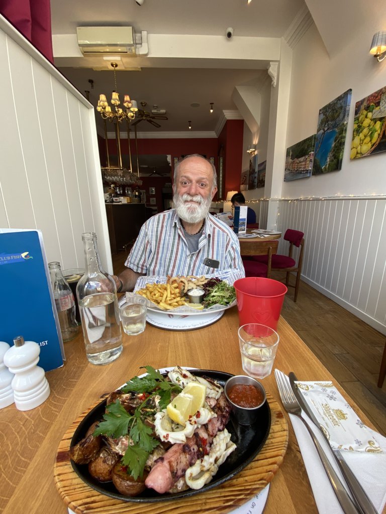 Incontriamo finalmente la Jessica – che ha lavorato a pieno ritmo per avere poi i giorni liberi da passare con noi – solo martedì sera, all’uscita dal Colisseum. Grandi abbracci e decidiamo di cenare ad un coreano (che Gabriele attende da quando siamo partiti : “vedrai che la Jessica vuole portarci di nuovo lì”) ; la Jessica ne sceglie uno nuovo (Koba BBQ Korean Restaurant) , che ci regala una cena memorabile, dove tutto ci appare perfetto. Un po’ per l’ambiente insolitamente tranquillo per un locale londinese, che ci consente di trascorrere una piacevole serata nel racconto delle vacanze in Galles e delle novità della Jessica, un po’ per l’ottima cucina che ci fa davvero sperimentare i sapori orientali: carne, pesce e verdure grigliate al centro del tavolo, già insaporite con spezie particolari, e accompagnate da altre curiose salsine ; ogni pezzetto di carne deve essere avvolto in una foglia fresca di insalata e passato dentro la salsina prescelta, con una varietà finale di abbinamenti e gusti davvero sorprendente ed invitante.    Dopo cena facciamo una breve passeggiata fino alla fermata dei nostri bus : aspettiamo quello di Jessica e infine il nostro che ci riporta al nostro camperone. La Nina è contenta di vederci tornare, ma non accenna proprio a chiedere di scendere dal camper, se non per le sue passeggiatine fisiologiche, come in ogni nostro soggiorno londinese.   Non è un cane metropolitano e non abbandona la comodità del suo rifugio sicuro.       Buonanotte   (1+7 Km.)
