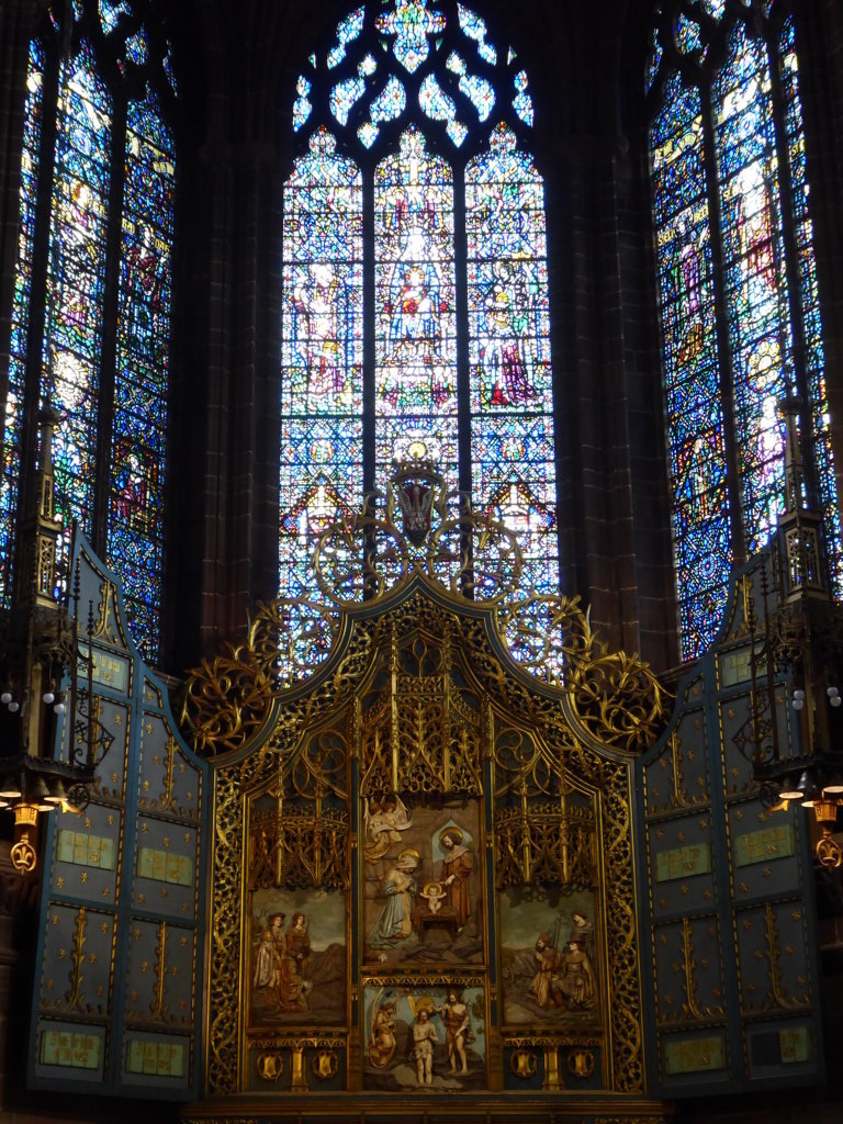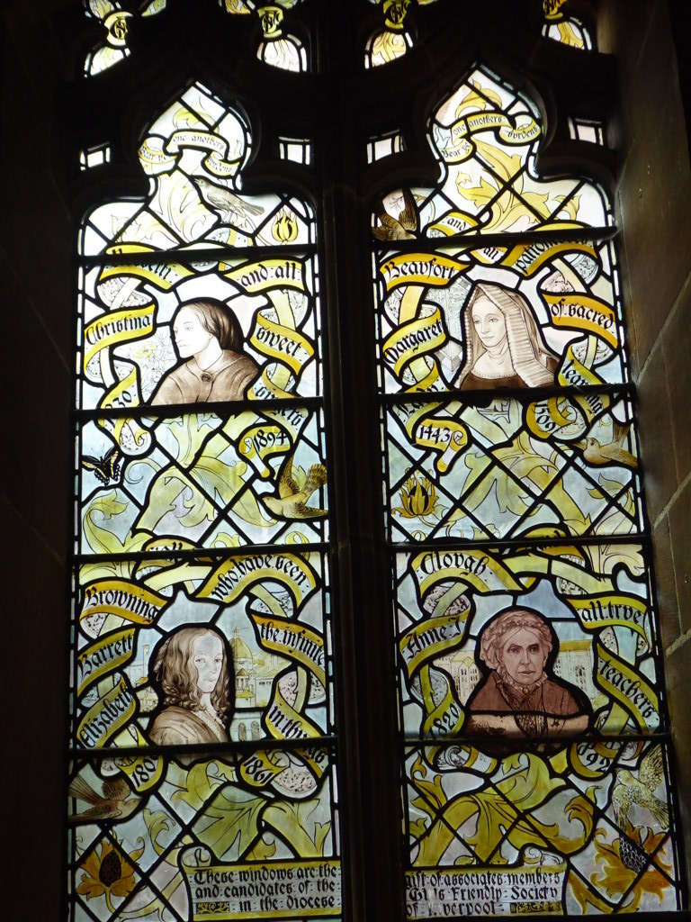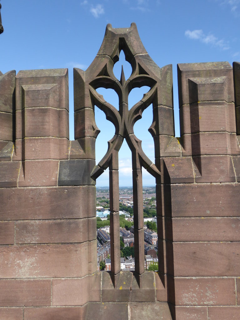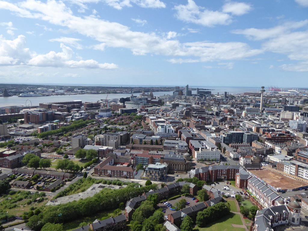 Partiamo alla scoperta della città che ci piace subito, con le sue costruzioni in mattoni rossi. Pranziamo deliziosamente bene in un ristorante consigliato dalla Lonely Planet  (Italian Club Fish).  Ci dirigiamo poi alla Liverpool’s Anglican Cathedral : costruzione recente, iniziata nel 1904 e terminata nel 1978, l’enorme edificio stupisce per l’anacronistico (e non propriamente riuscito) stile gotico : stranamente massiccio e pesante nonostante le linee verticali,  di dimensioni gigantesche .  E’ la più grande chiesa anglicana del Regno Unito ed una delle più grandi del mondo, grazie alla sua navata lunga 150 metri, con volte alte fino a 55 metri e torre svettante a 101 metri, che scaleremo (in parte aiutati da un ascensore).   Di rilievo il sistema di campane (13 campane con un nome proprio, oltre a quella centrale la più grande, Great George, che è la terza al mondo per dimensioni e viene suonata solo a Pasqua e Natale) , oltre all’organo con 9765 canne, più grande al mondo.   Bellissimo il panorama che si apre allo sguardo dalla cima della torre, cui si sale con due tratte di ascensori ed una serie di ripide scale , moltiplicato dalla luce tersa del sole che squarcia le nuvole.  Salutiamo il nostro S-Lego parcheggiato verso il Mersey.  Molto bella , anche per il significato , The Lady’s Chapel, costruita con il contributo di una benestante benefattrice, dedicata a Maria e più in generale a tutte le donne, famose e non, che hanno contribuito alla storia, grande e quotidiana.