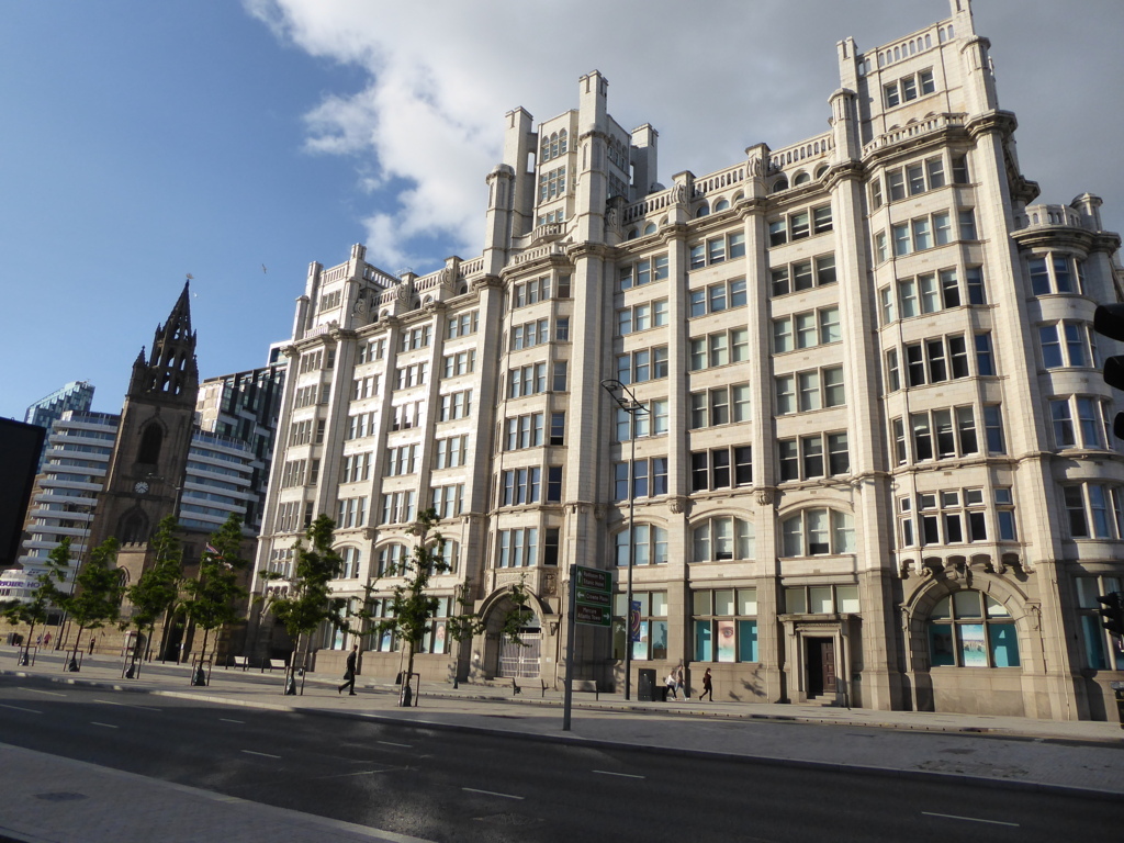 Ci dirigiamo quindi verso i Docks, che se fino agli anni 70 annerivano le rive del Mersey ai tempi del declino industriale, da oltre 20 anni sono stati oggetto di grandiosi interventi urbanistici di recupero e rinnovamento e nel 2004 sono stati dichiarati Patrimonio Mondiale dell’Umanità dall’UNESCO.   Si succedono The Three Graces, le Tre Grazie : tre edifici edoardiani che mostrano con magniloquenza la prosperità della fine del XIX° secolo: il Royal Liver Building sormontato da due fenici (1911, sede di una compagnia assicuratrice) , il Cunard Building (in stile rinascimentale, sede della compagnia del Lusitania e del Titanic) ,  il Port of Liverpool Building (1907, con la cupola ispirata alla Cattedrale di St. Paul ) .  Proprio accanto il Museo di Liverpool, emblema del rinnovamento architettonico della città, che prende vita nel vetro, nell’acciaio, nel calcestruzzo, oltre ai palazzi dalle linee futuristiche .