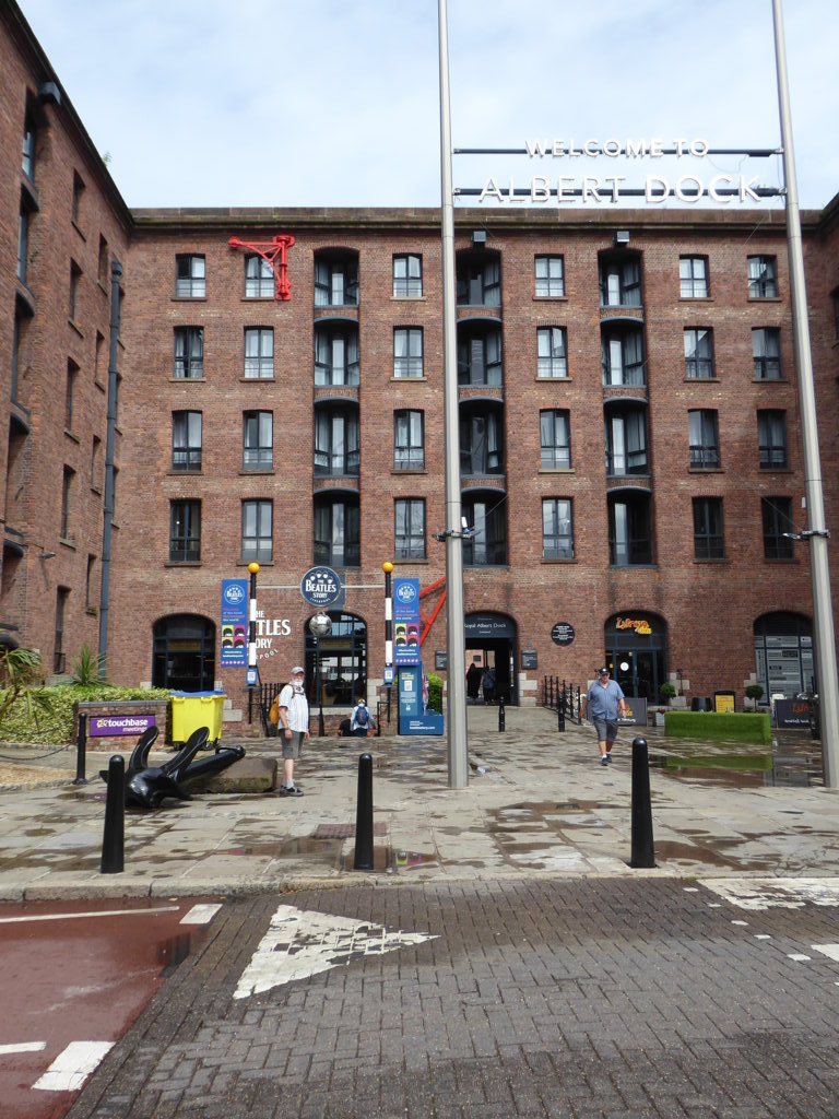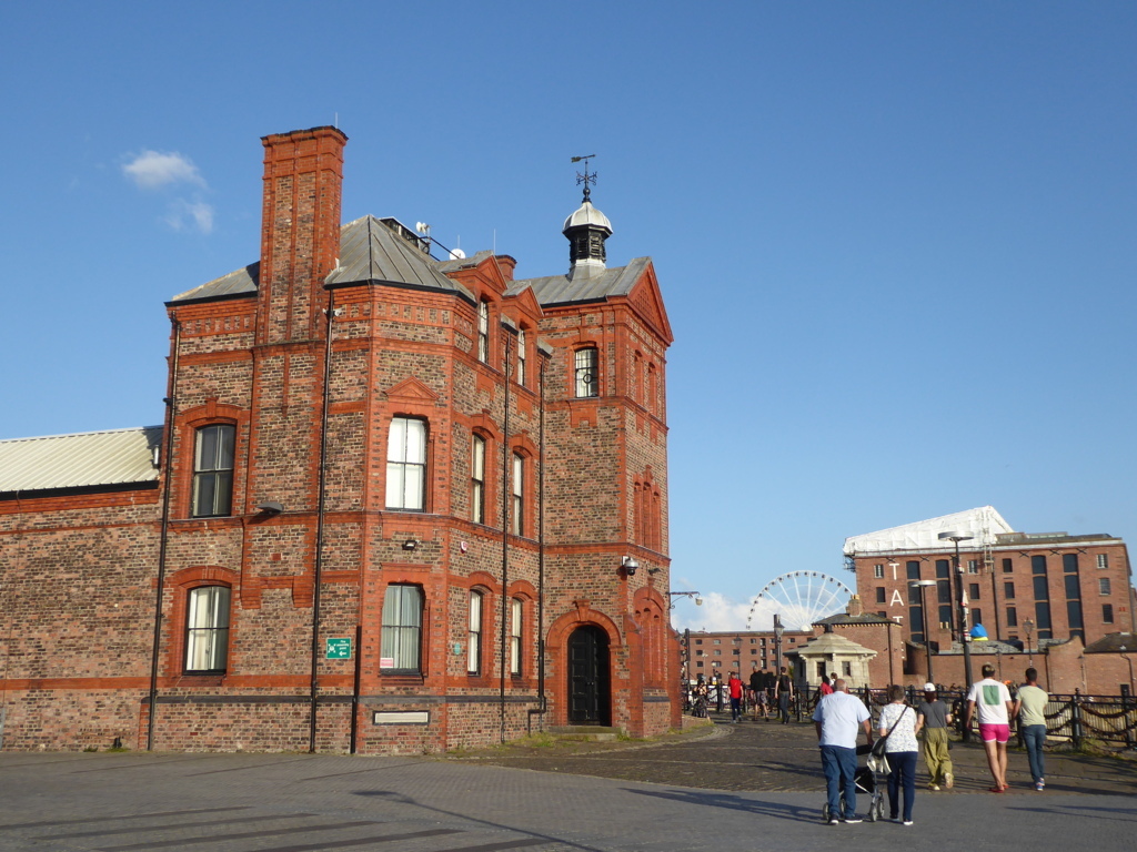 Passeggiata tranquilla sotto il sole : centro città e Docks, che sono veramente stupendi.  Il sistema portuale di Liverpool è composto da un sistema di bacini unico al mondo : fino a pochi decenni fa l’area portuale rappresentava il declino industriale della città, mentre oggi è stata completamente riqualificata ed ospita alcuni dei più importanti musei.   La città di Liverpool ha un grande legame con il suo porto : si è infatti sviluppata dopo il 1715 quando viene costruito l’Old Dock , che è la prima darsena commerciale del mondo. La novità consisteva nel creare una parte interna al porto, chiusa da dighe, che poteva riparare le navi e proteggerle dalle correnti del Mersey. Negli anni successivi l’area portuale è stata ampliata con l’aggiunta di ulteriori darsene collegate tra loro, che si estendevano per oltre 12 Km. ; all’epoca questo sistema portuale interconnesso era considerato il più avanzato del mondo perché i vari bacini consentivano alle navi di muoversi al loro interno per 24 ore al giorno, senza che le correnti del fiume Mersey creassero loro alcun problema.  Inoltre nel 1885 questo sistema di dighe era diventato anche il centro di una rete idraulica che forniva di energia elettrica la città.   Purtroppo il lato negativo  della storia recente è legato alla speculazione edilizia  : infatti molte darsene sono sparite dalla geografia  della città, perché sono state riempite per creare terreni edificabili.   Un esempio su tutte è il progetto Liverpool Waters che ha fatto finire tutta l’area portuale nell’elenco del patrimonio UNESCO in pericolo. Per fortuna alcune parti del vecchio porto si stanno salvando da sole perché sono diventate imperdibili mete turistiche, come l’Albert Dock.    Si tratta di un complesso di magazzini edificati nel 1846 senza usare il legno per sostenere le strutture : Il progetto di Jesse Hartley e di Philip Hardwick era decisamente futuristico per l’epoca e prevedeva di utilizzare solo ghisa, mattoni e pietre come materiali da costruzione per rendere questi edifici meno soggetti ad incendi.  Nell’Inghilterra di inizio Novecento l’Albert Dock aveva introdotto un rivoluzionario sistema di carico e scarico delle navi direttamente dall’alto dei magazzini anche con l’utilizzo di gru idrauliche.   L’Unesco lo definisce come  “il supremo esempio di un porto commerciale in un momento di grande influenza globale”.   La storia di Liverpool è infatti indissolubilmente legata al suo porto commerciale , e in  modo particolare al trasporto transatlantico. Nono solo navi di lusso come il Titanic, ma anche enormi bastimenti carichi di schiavi e disperati in cerca di fortuna. Tra il 1830 e il 1930 circa 9 milioni di persone sono partite da Liverpool con destinazione Nord America, Australia e Nuova Zelanda.   Il porto però era così strettamente legato al trasporto commerciale che dopo la prima guerra mondiale il calo dell’emigrazione e lo spostamento delle crociere della Cunard Line a Southampton hanno praticamente fatto cessare tutte le attività, lasciando solo i magazzini per lo stoccaggio della merce.  All’inizio della seconda guerra mondiale l’Albert Dock era stato requisito dalla Marina inglese per diventare la base di tutta la flotta atlantica britannica, compresi i sottomarini e le navi da guerra. Questa sua importanza strategica l’aveva fatto diventare obbiettivo dei bombardamenti tedeschi che ne avevano distrutto una gran parte (oltre a colpire altre zone della città, come il World Museum , che ha perso parte delle sue  collezioni) . Alla fine della guerra il porto era conciato così male che la società proprietaria (la Mersey Dcks and Harbour Board , MDHB) si era ritrovata nel mezzo di una gravissima crisi finanziaria decidendo di non procedere al recupero.   Anche se si sono susseguite varie proposte di riqualificazione a partire dagli anni sessanta, la ristrutturazione dell’Albert Dock è iniziata solo negli anni ottanta.  Oggi l’area portuale ospita orgogliosamente il Tate Liverpool, il Meyerside Maritime Museum e numerose attrazioni turistiche.