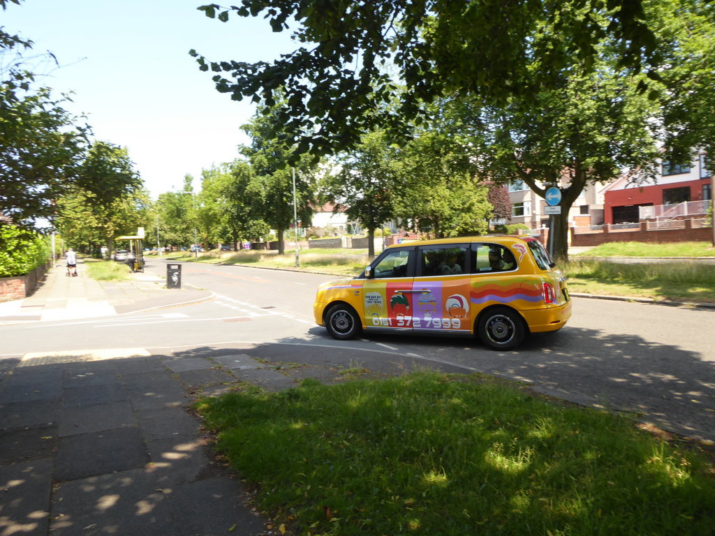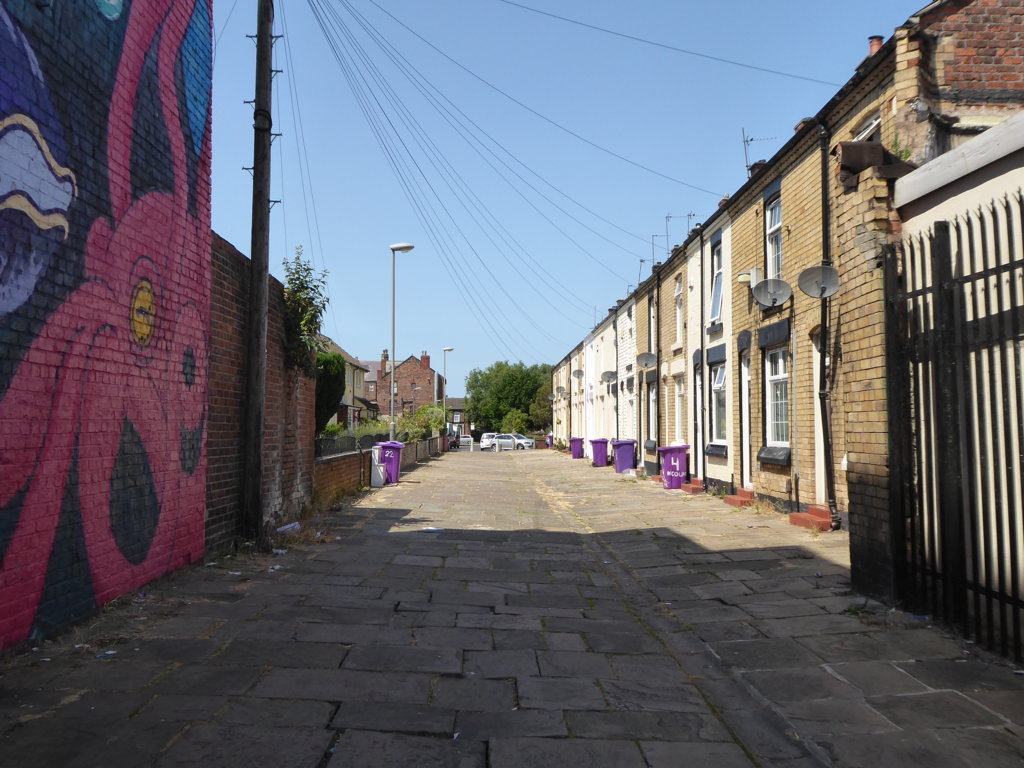 • 12 Arnold Grove, casa di George Harrison .  Tutto bene fino all’arrivo, quando ci accorgiamo di essere in un vicoletto senza uscita : peggio in un vicolo diramato in tre vicoli senza uscita.  Pensiamo subito di esserci messi in un guaio, ma Gabriele riesce ad uscire in retromarcia, arriva ad un punto in cui riesce a girare il camper e fuggiamo.  Riesco a individuare l’abitazione, minuscola : un appartamento penso di due locali, cucina/salotto a piano terra, camera da letto al primo piano, con il bagno nel cortile posteriore. Nessuna targa identificativa.