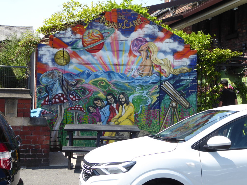 Giovedì 22 giugno 2023. Notte poco riposata : i gabbiani hanno strillato tutta notte – non sappiamo perché – e si sono sentite varie sirene.   Proseguiamo con il programma fatto : abbiamo scaricato una mappa del Beatles Tour organizzato da vari gestori (costo minimo 20 sterline a persona, in bus, senza ingresso nelle case di Lennon e di McCartney, del National Trust).    Decidiamo quindi di farlo in autonomia, con alcune perplessità per la viabilità dei percorsi e le soste …. Ma se ci riescono i bus, i pulmini, i taxi , ci dovremmo riuscire anche noi.   Nella periferia di Liverpool (molto periferica, quartieri che poco tempo fa erano veri e propri paesi) di Liverpool in ordine affronteremo le tappe di :