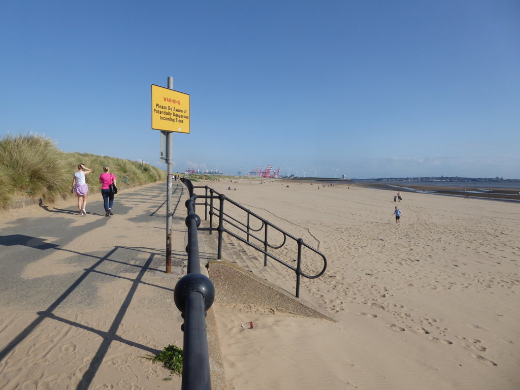 Passeggiamo lungo tutta la spiaggia (alla fine facciamo quasi 10 Km) anche per fare un po’ di spesa (frutta e verdura) con somma felicità della Nina, che inizia a fare le sue corse scatenate in spiaggia.  Il paese in realtà non ci convince molto : case turistiche, anonime e spesso deserte, con un’atmosfera generale triste e cupa.   Al tramonto poi si scatenano le scorribande dei ragazzi, che sembrano concentrarsi tutti nel parcheggio della spiaggia (come dar loro torto, vista l’atmosfera cupa del paese ?) : dopo cena (passatelli e fragole) decidiamo perciò di tornare al nostro tranquillo parcheggio al Kings Dock di Liverpool .