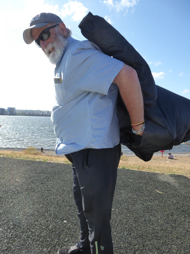 Ci posizioniamo sistemando tutti i cunei sotto le ruote per raddrizzarci un po’ e diamo il via alle operazioni serali : preparazione delle scatole per la Nina (che ha finito le sue scorte), della nostra cena (brodo leggero e frutta), foto e diario . E buonanotte.   Oggi solo 7,5 Km. :  però in parte sotto la pioggia.