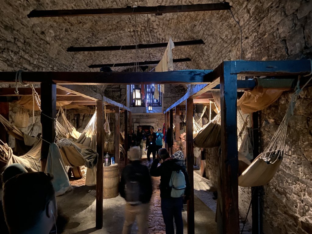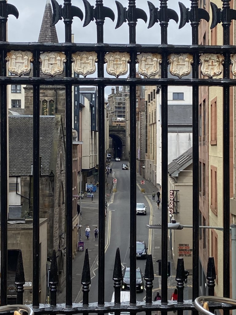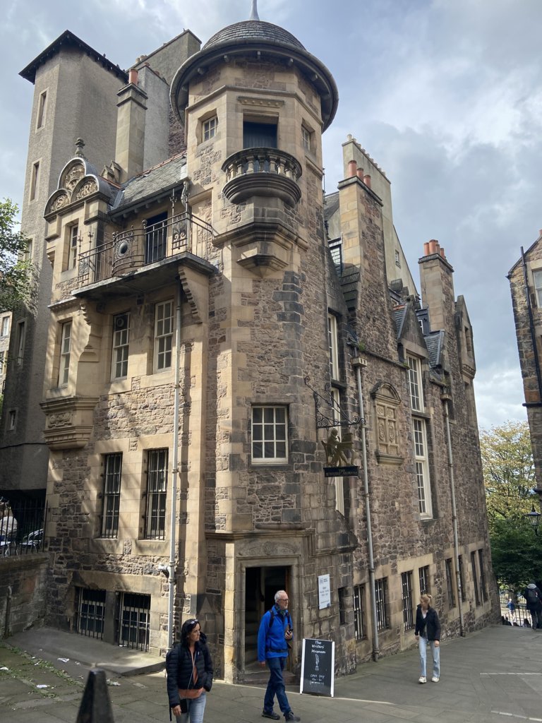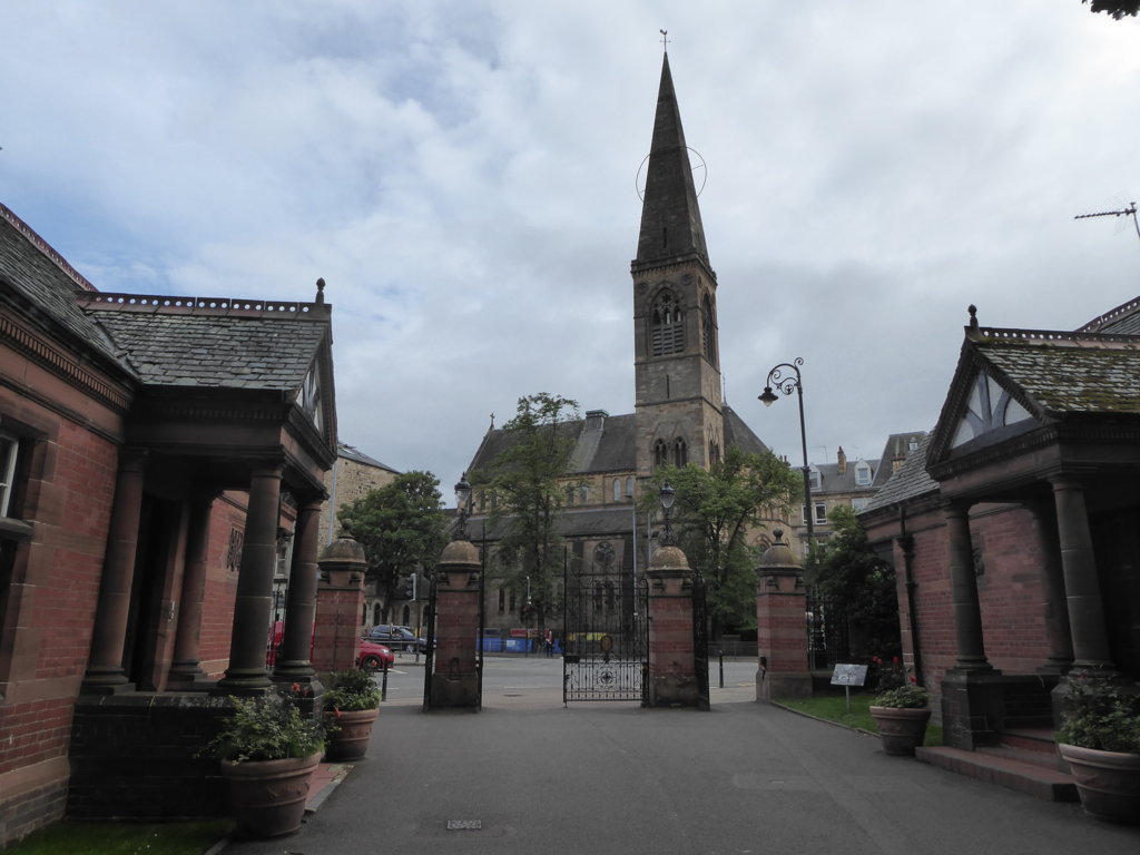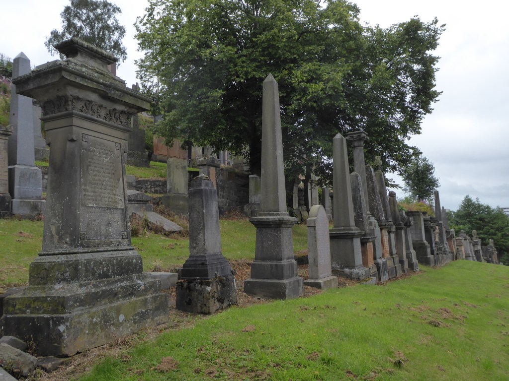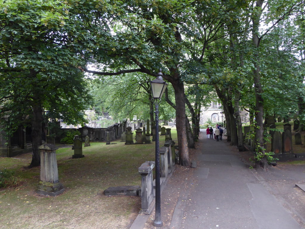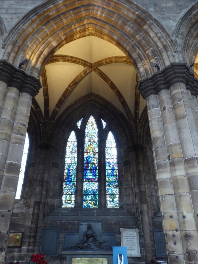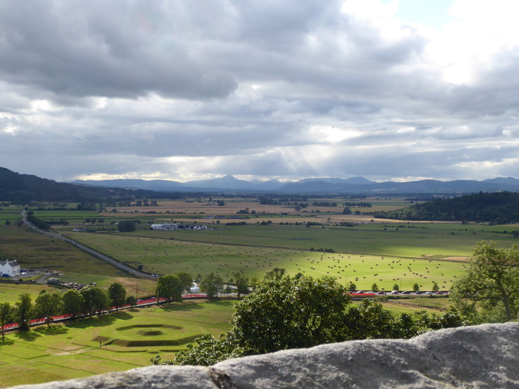 Arrivati a Stirling parcheggiamo nel Linden avenue car park dove non ci sono divieti per la sosta notturna (2 sterline per le 24 ore). Passeggiata di circa 20 minuti (in salita) per raggiungere la Old Town , raccolta sotto il castello, fortezza inespugnabile situata sulla cima di un possente dirupo boscoso (il tappo di un vulcano estinto) . E’ un dedalo di edifici grandiosi e di strade acciotolate che salgono tortuosamente verso il nucleo centrale raccolto sotto al castello. “Prendi Stirling e controllerai la Scozia” : questa massima conferma l’importanza strategica del castello, confermata dalla presenza di una fortezza in questo luogo fin dall’era preistorica. L’attuale struttura risale al XIV-XVI secolo, quando fu eletto a residenza degli Stuart : non visiteremo però le strutture del castello (Great Hall, Royal Chapel, Great kitchens, Tapestry Studio…) né il Royal Palace e la Prince’s Tower (suite di sei camere , tre per il re e tre per la regina, con i soffitti decorati, i camini, gli arazzi) restaurato di recente in un sontuoso tripudio di colori, perché arriviamo quando oramai gli ingressi sono bloccati . Propendiamo quindi per l’unica visita che l’orario ci consente : la Old Jail . Un attore in costume, impersonando diversi ruoli con cambi d’abito, ci illustra in modo coinvolgente i due periodi della storia penitenziaria : dalle vecchie prigioni che avevano la fama di essere le peggiori di Inghilterra (Tolbooth, costruzione poco distante, ora riconvertita in un centro per la musica e le arti) dove ogni crudeltà era giustificata da una logica unicamente punitiva, a quella riformata ed illuminata, ispirata dall’idea del recupero e della riabilitazione sociale e lavorativa. La visita alla torre ci regala una vista a perdita d’occhio sulla città e sulla regione : a parte i raggi di sole che filtrano tra le nuvole incrociati (proprio come il tartan scozzese ! ) e l’arcobaleno, avvistiamo il misterioso Wallace Monument, una torre in stile gotico vittoriano circondata voli di corvi e pipistrelli e dedicata a Braveheart : William Wallace (nato in Scozia nel 1270 e morto a Londra nel 1305) il leggendario combattente per l’indipendenza scozzese soprannominato Hammet of the Scots (il martello degli scozzesi) , divenne eroe nazionale per aver guidato una insurrezione contro Edoardo I d’Inghilterra che nel 1296 aveva deposto e imprigionato il re di Scozia John Balliol. Nel 1297 a capo di 30 uomini assalì la cittadina di Lanark, uccidendo il governatore inglese e sconfisse gli inglesi in una prima battaglia ; venne quindi proclamato Guardiano del regno, ma venne sconfitto dagli inglesi a Falkirk nel 1298 ; nel 1305 fu catturato , processato, torturato e giustiziato a Londra. Le sue vicende ispirarono il film di Mel Gibson del 1995, vincitore di 5 premi Oscar, non pienamente fedele alla intricata vicenda storica. Entriamo poi nel cortile della Church of the Holy Rude, una delle più belle chiese medioevali della Scozia, circondata dal vecchio cimitero .