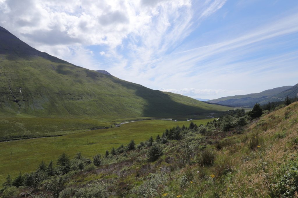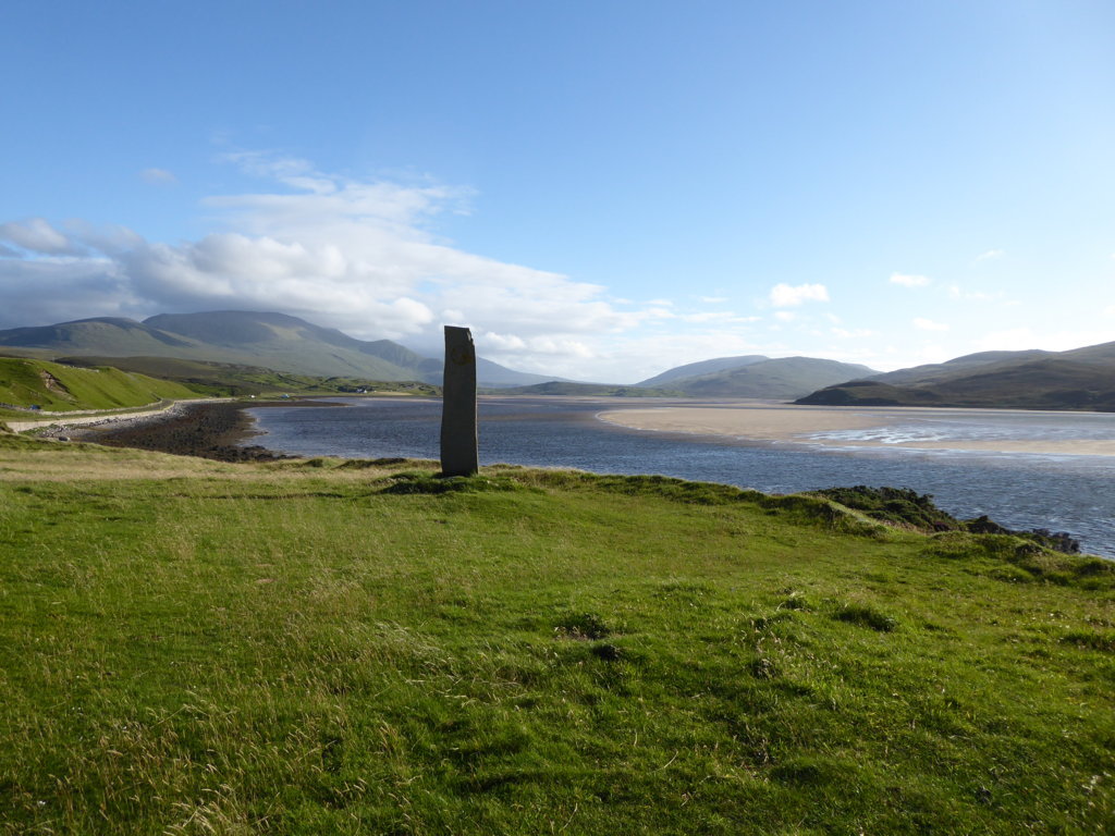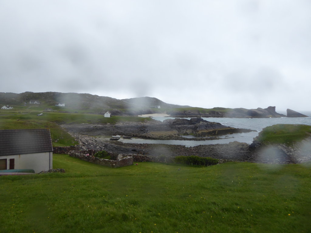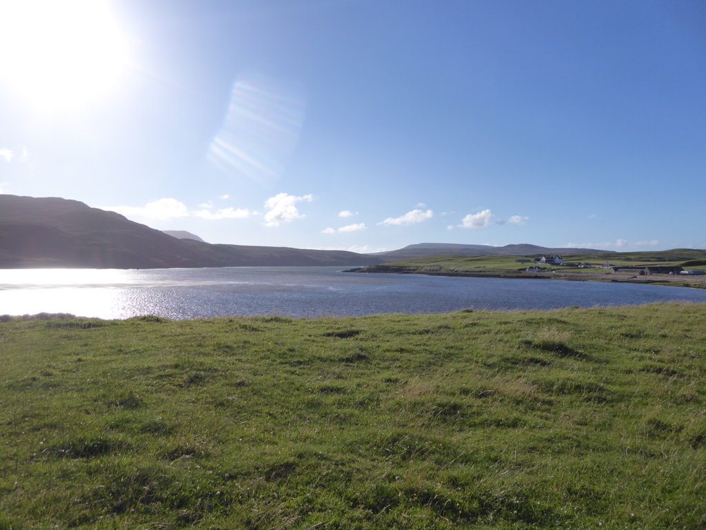 Ci troviamo nel North West Highlands Geopark, che fa parte di una rete di oltre 240 aree di rilevante interesse geologico, riconosciute dall’UNESCO, e in particolare in una tappa della Pebble Route 4 (la strada delle pietre numero 4). Il fiordo comprende anche l’estuario del fiume Dionard , e questa particolare conformazione lo rende l’ambiente ideale per la pesca al salmone. La struttura del terreno (arenaria cambriana) lo ha reso un suolo fertile, adatto per attività agricole e pastorizia. Ci troviamo infatti nel territorio della fattoria Keoldale, una delle più estese della Scozia (che contiene anche un insediamento dell’età del bronzo) ; verso le 21 un anziano rappresentante della stessa bussa alla nostra porta e ci chiede di pagare il contributo per il parcheggio notturno (15 sterline), rilasciandoci regolare ricevuta scritta con calligrafia tremolante.