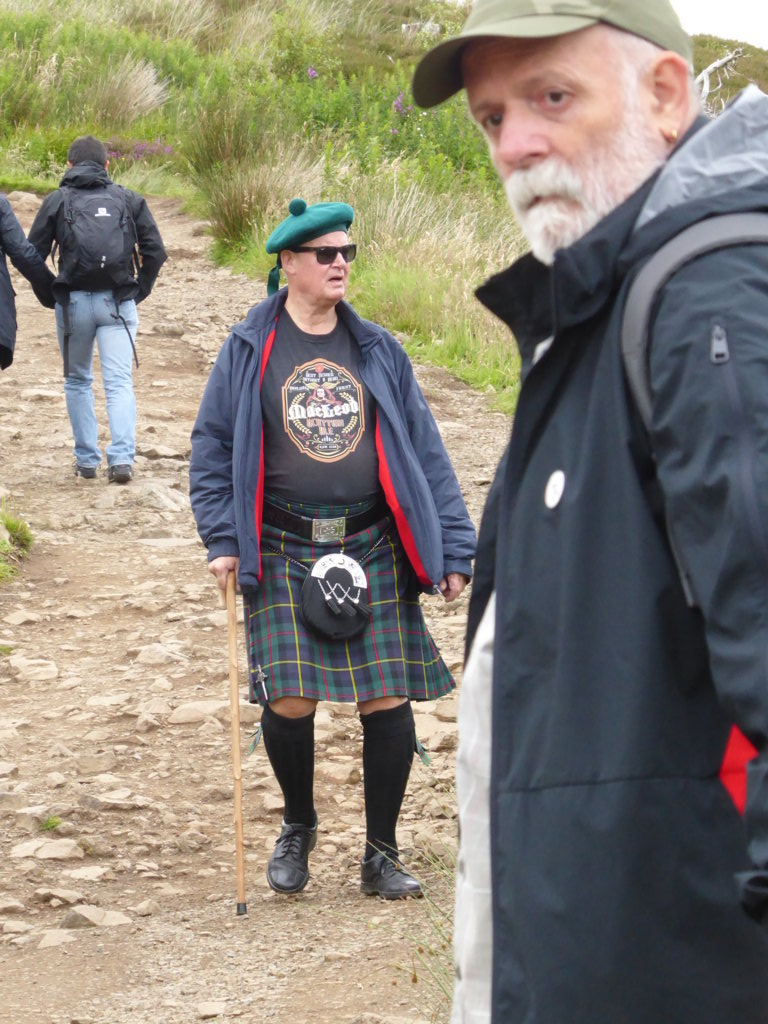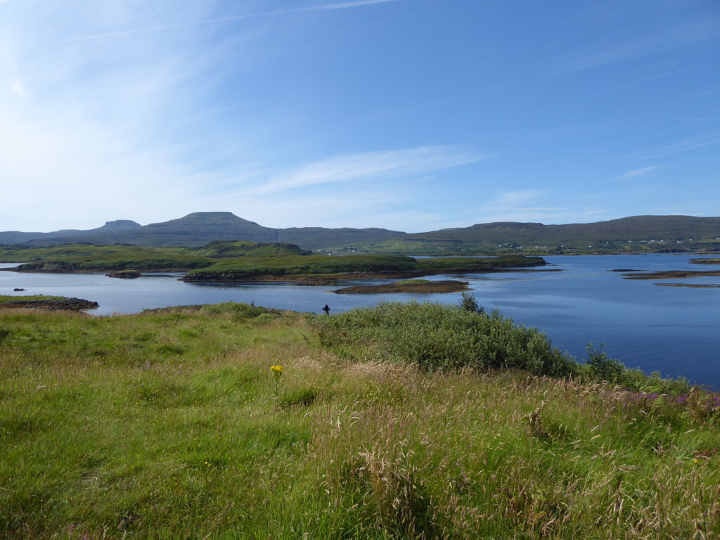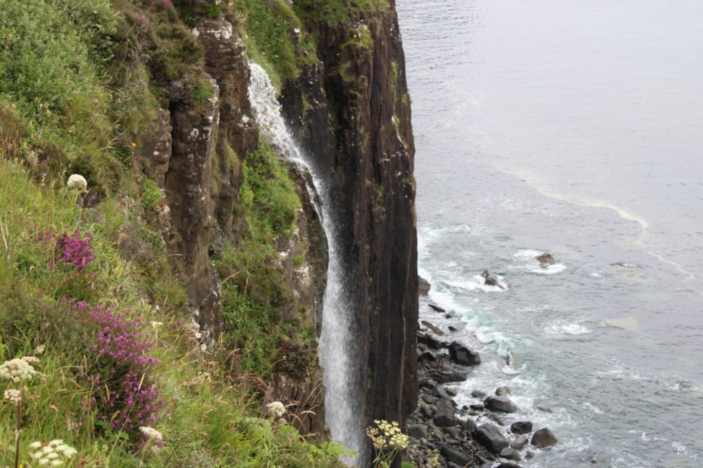 Incontriamo poi la Kilt Rock, una scogliera di basalto colonnare (linee verticali) poggiato su una scogliera di arenaria (linee orizzontali) , che assomiglia veramente allo scozzese del quilt ; in questo scenario da un lago (Mealt Loch) origina un piccolo ruscello che precipita in mare dall’alto di una scogliera verticale con un salto di quasi 100 metri (Mealt Falls) .