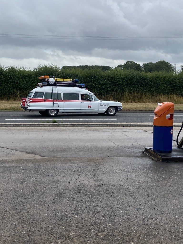E – in mezzo al nulla – facciamo il pieno accanto all’auto dei Ghostbuster : esatto una delle auto originali usate per girare il film, completamente attrezzata. E molto frettolosi : evidentemente spazientiti di fronte al nostro stupore – che rallenta le nostre operazioni – ed alle domande che non riusciamo a non fare. Finiscono il loro rifornimento alla velocità della luce e sgommano proprio come in un film.