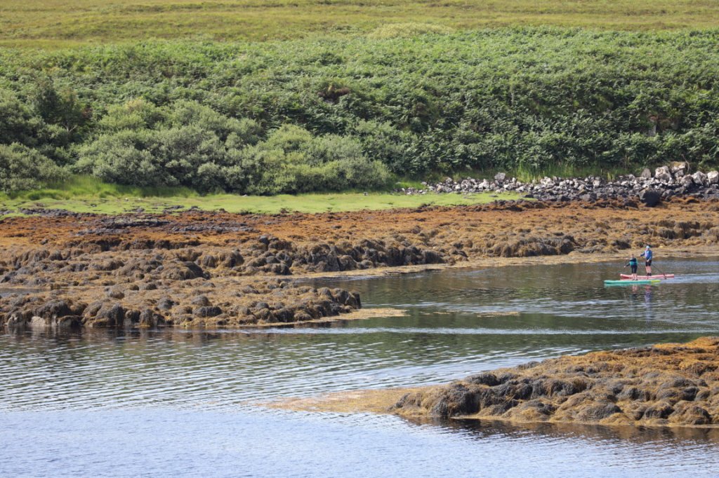 Giovedì 28 luglio 2022. Appena svegli ci trasferiamo a Dunvegan (380 abitanti) , dove facciamo colazione affacciati su un fiordo, sotto un cielo che oggi è azzurrissimo. Ci trasferiamo poi al castello (rinunciamo alla visita, troppo costosa) e decidiamo di cercare di vedere autonomamente le foche residenti nel fiordo. Proseguendo lungo la stretta stradina oltre il castello arriviamo ad una piazzola panoramica che ci regala un’ampia visuale sulle isolette che “popolano” il fiordo : avvistiamo prima i turisti alla ricerca di un contatto ravvicinato con le fochine (su barca, su tavola…) poi riusciamo a localizzare anche le foche , che si immergono nelle acque e risalgono per respirare, poi stanno stese a prendere il sole sugli isolotti .. e sembra quasi che sorridano beate della propria libertà .
