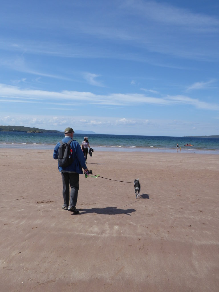 Ed infine approdiamo a Gairloch , dove non possiamo non sostare : rimaniamo abbagliati dall’immensità della spiaggia dorata e dai mille colori del mare che si apre improvvisamente di fronte ai nostri occhi . Ci dispiace non aver portato il costume da bagno insieme alla giacca a vento… Anche la Nina apprezza il luogo e si scatena in corse velocissime in spiaggia : alla fine sorride felice lasciandosi spettinare dalla brezza fresca.