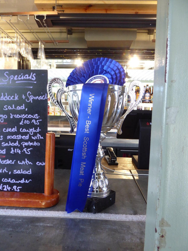 Arriviamo a Lochinver – che segna il momentaneo ritorno alla civiltà – in tarda mattinata giusti giusti per un giro in paese : con i suoi 600 abitanti è un villaggio con una atmosfera molto tranquilla, ed uno dei porti pescherecci più attivi della Scozia (le sue grandi strutture occupano praticamente mezzo paese, e si elevano sul resto del paese in modo un po’ impressionante. Arriviamo al Lochinver Larder, superchiosco che produce eccezionali sformati fatti in casa, con ripieni molto particolari : carne, verdure, castagne, mele, mirtilli. Alcune delle sue pie sono state premiate –meritatamente- come le migliori della Scozia . Pranzetto delizioso in camper, affacciati alla baia sferzata da un bel vento gelido.