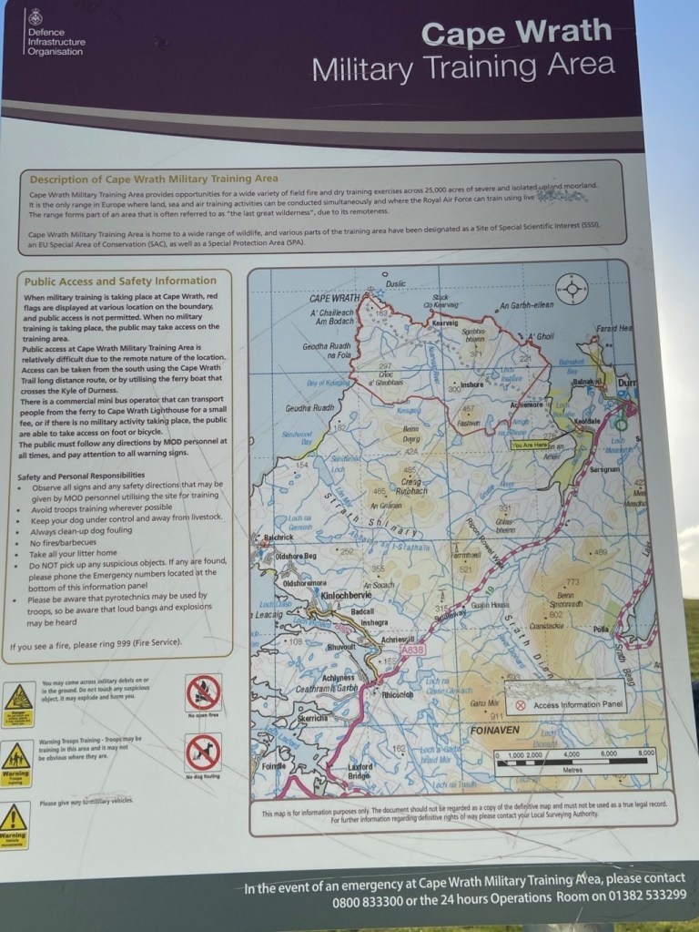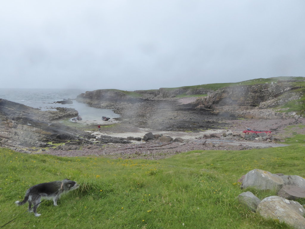 Domenica 31 luglio 2022 . Risveglio a Keoldale : ci spostiamo subito nel parcheggio del piccolo molo dove aspettiamo il barcone che ci porterà a Cape Wrath. Sulla nostra carta geografica il luogo viene contrassegnato con le parole “Danger Area”, per la presenza di forze militari (di aria , di terra e di mare contemporaneamente) che fanno esercitazioni (bombing) su bersagli colorati dislocati nel territorio, con un calendario abbastanza fitto (le esplosioni si sentono chiaramente fino al vicino vilaggio di Durness. . Dopo una bassa marea notturna, siamo nuovamente in alta marea . Il barcone è una enorme vasca di metallo che ci porta alla partenza del pulmino dove un