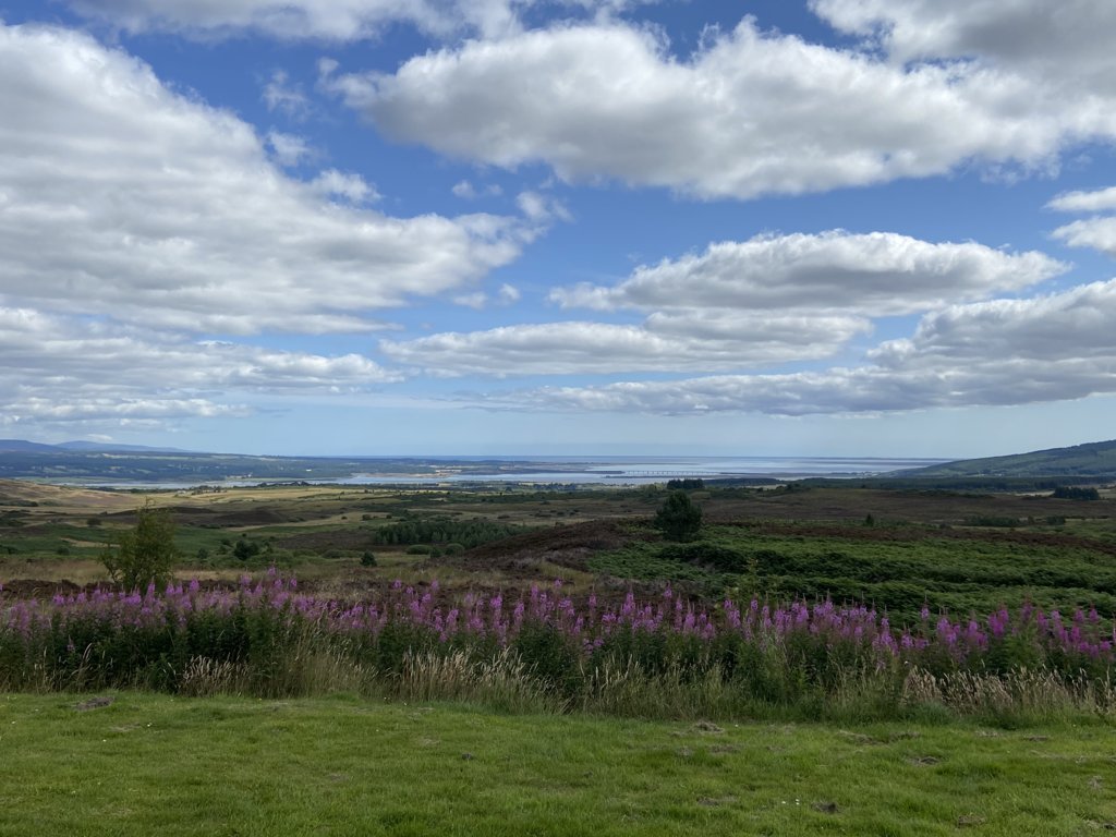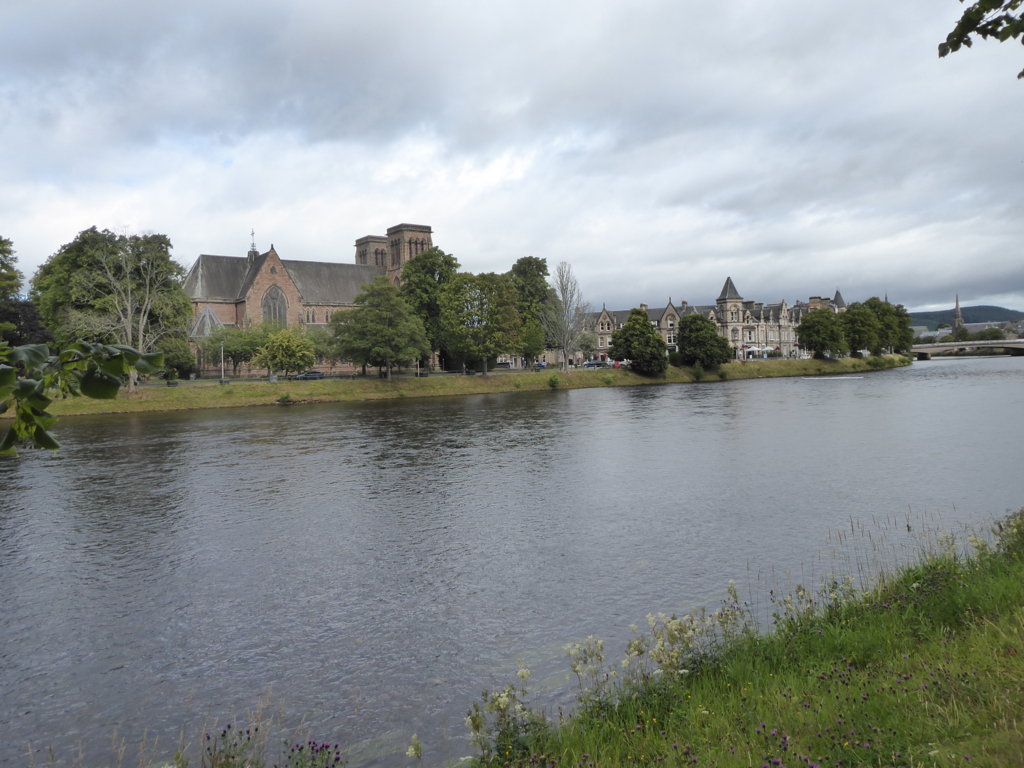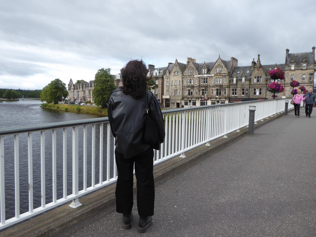 Lunedì 1 agosto 2022. Abbandoniamo quindi la North Coast – a malincuore – e rinunciamo alla parte a est – temporaneamente : prendiamo l’ultima strada disponibile che scende verso Inverness attraversando il cuore delle Highlands (A836), attraverso paesaggi sempre spettacolari. Costeggiamo il Loch Loyal (un vero lago) ; attraversiamo territori collinari/montuosi, praterie verdi, brughiere, acquitrini, boschi ; costeggiamo/attraversiamo alcuni fiordi ( Dornoch, Cromarty Firth, ed infine il Moray). Ci circonda una esplosione di colori sotto un cielo azzurro e terso : paesaggi coltivati (i primi che vediamo in Scozia) con ampi campi di grano dorato che brilla al sole , delimitati da ciuffi di fiori viola e più discrete distese di erica a ricoprire completamente i pendii più dolci delle colline . Approdiamo infine al campeggio (Bought Drive, che si rivelerà tranquillo e comodo per la visita del centro città , ma decisamente costoso con servizi carenti) a Inverness (100.000 abitanti) e partiamo subito per la visita alla città.