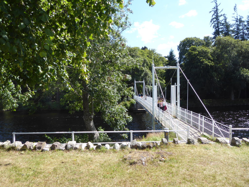 Brusco ritorno alla civiltà ed alla folla. Visitiamo le Ness Islands , isolotti sul fiume Ness su cui crescono alberi secolari, collegati da romantici ponti vittoriani bianchi . Seguiamo il fiume Ness (che proviene dall’omonimo lago e dove si pescano i salmoni) fino al centro città . Pranziamo alla Castle Tavern (zuppa del giorno piccantina e pesce) per poi girovagare nel centro città, visitando vari negozi molto caratteristici (whisky, tartan, quilt), il Viktorian Market. Mercato coperto del primo novecento, che – eliminati i negozietti più turistici – ospita ancora antichi negozi che ti catapultano in un’altra dimensione : un negozio di cornamuse, una bottega di orologi ferroviari, un gioielliere che vende esclusivamente anelli di fidanzamento. Scopriamo che però con delusione che quasi tutti i negozi chiudono alle 15-16 e quindi corriamo a vedere la Leakley Book Shop, negozio di libri usati che ha occupato una vecchia chiesa sconsacrata. Saliamo quindi alla Old High Church St. Stephen : dal cimitero antistante abbiamo una stupenda visuale sul fiume e sui ponti vittoriani che lo attraversano. Il suo campanile è stato per anni la costruzione più elevata di Inverness : dal 1703 la sua campana suonava ogni giorno alle 17 per decretare l’inizio del coprifuoco notturno (dopo le 17 infatti per girare in strada occorreva accendere una lanterna ; ma essendo la maggior parte degli edifici costruiti in legno, il fuoco era considerato pericoloso ed evitato ) ; ancora oggi suona ogni giorno alle 20 . Entriamo alla Coop sotto il sole e – dopo una piccola spesa – usciamo sotto la pioggia battente, che ci accompagna per tutto il rientro in campeggio. Decido di fare una doccia, che sarà la peggiore della mia vita : un flebile rivolo di acqua che scende solo premendo un durissimo pulsante (che richiede l’impiego di due mani rendendo difficili ogni altra azioni). Impossibile regolare la temperatura : prima scende un filo di acqua gelata, e sto quindi per desistere, quando inizia a scendere un rivolino tiepido, per cui decido per un rapido shampoo … e a quel punto inizia un rivolo bollente che non riesco a raffreddare neppure chiudendo ed aspettando (bagnata e insaponata) per alcuni minuti. Quasi ustionata ed imprecante torno in camper, avvistando una comitiva di allegri anziani (mi chiedo come hanno fatto a fare la doccia) alloggiati in un Bus Hotel, di cui non conoscevo l’esistenza : un autobus con un rimorchio con tre file di finestrini (che contiene le camere da letto ed una cucina completa). Consiglio visita del sito internet, da annoverare nella categoria “i bus più strani e originali del mondo” : con prezzi che vanno dai 600 ai 6000 euro offrono da una settimana di viaggio in diverse mete europee, a viaggi nel lontano oriente, o sul monte Everest, o nei deserti più spettacolari del pianeta, fino ad un tour dell’Australia della durata di 50 giorni. Anche per oggi : buonanotte .