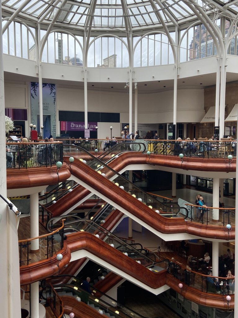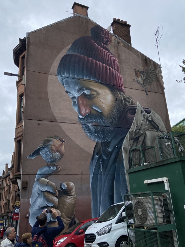Per finire la visita facciamo un pranzo-merenda nel patio : ottima zuppa del giorno e ottimo avocado toast. Con un bel male ai piedi torniamo al nostro camper in bus e salutiamo Glasgow .