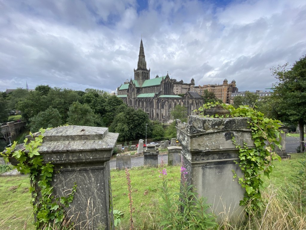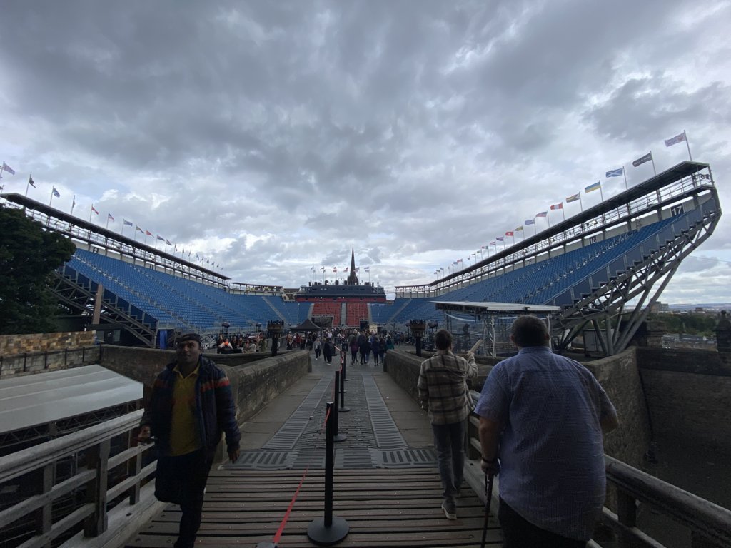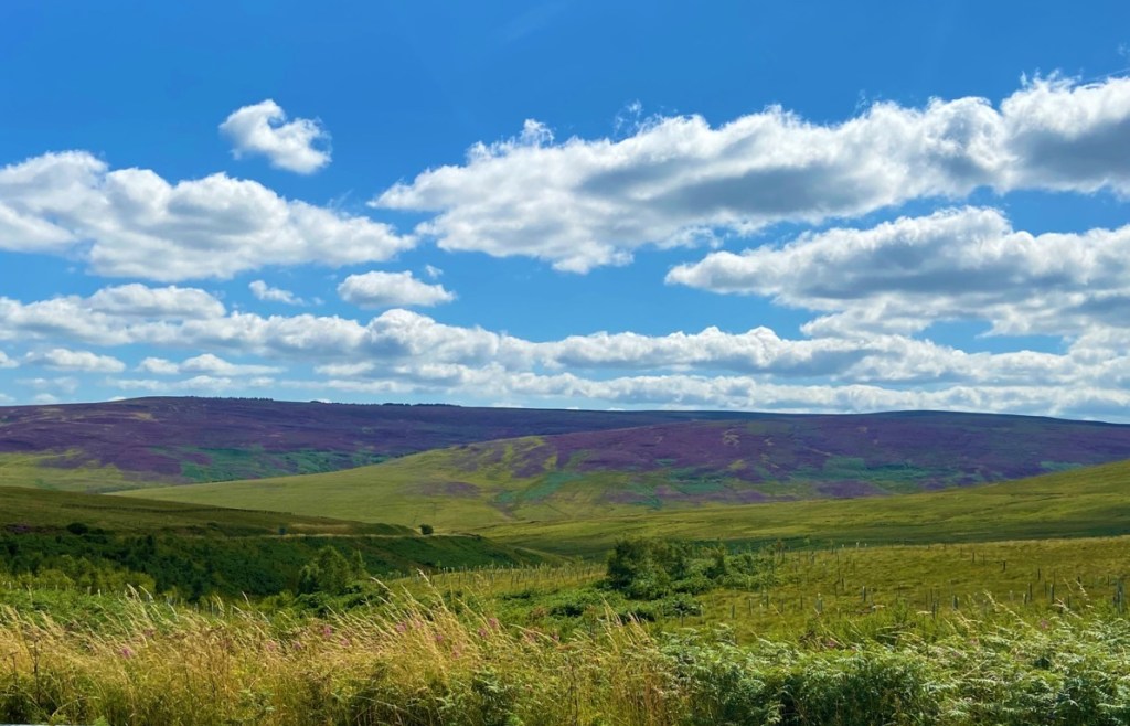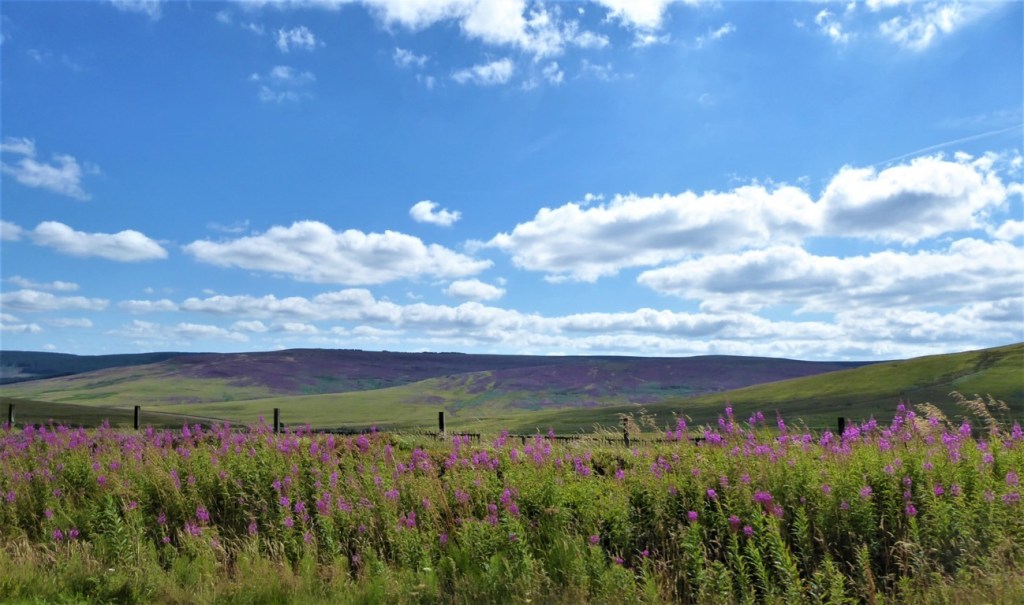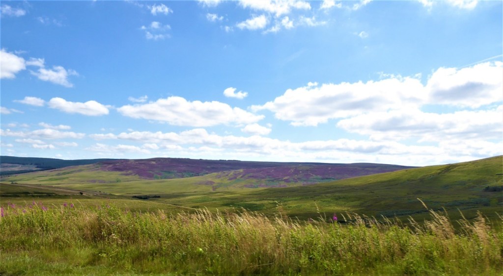 Lunedì 25 luglio 2022. Dopo una tranquilla e rapida colazione in camper (Gabriele trova le sole briosche da asporto da Caffè Nero) partiamo per il secondo trasferimento lungo, che ci porterà da Chester alla nostra prima tappa scozzese, Stirling (420 km.). Viaggio tranquillo, tra sole pieno, sprazzi di sole tra le nuvole, finalmente pioggia battente, pioggerellina con sole… e chi più ne ha più ne metta. Bellissimo il passaggio attraverso le dolci colline verdi del North Yorkshire e della Cumbria : qui il paesaggio è tutto verdissimo, di mille tonalità di verde che rinfresca solo a guardarlo ; mucche pezzate e pecore libere al pascolo ; larghe chiazze di fiori gialli e fucsia interrompono il verde …