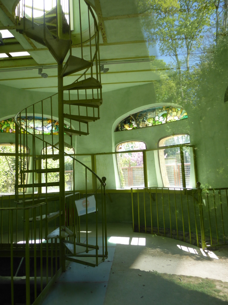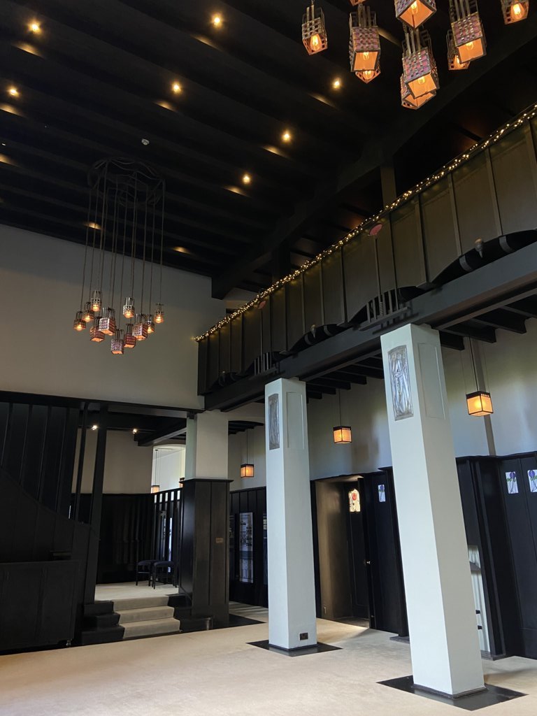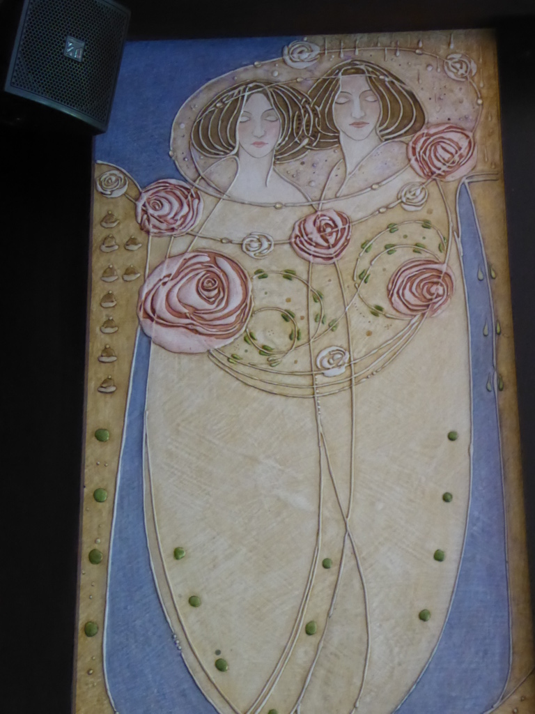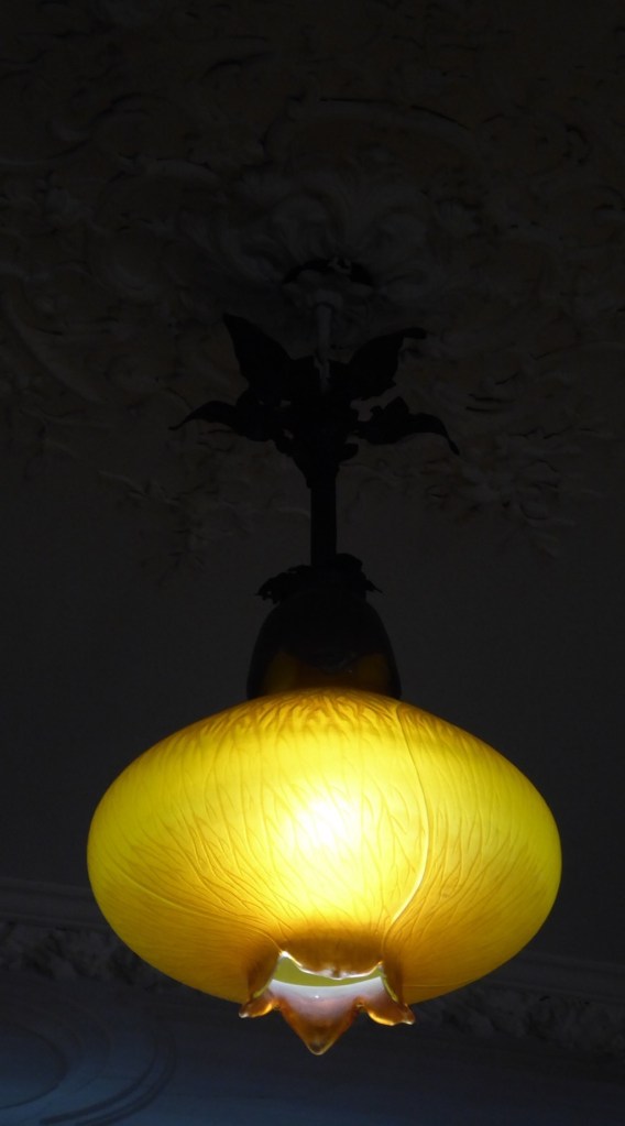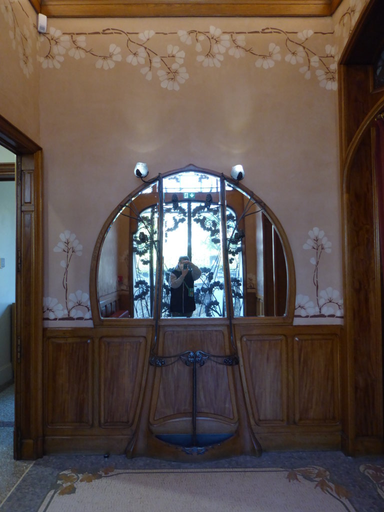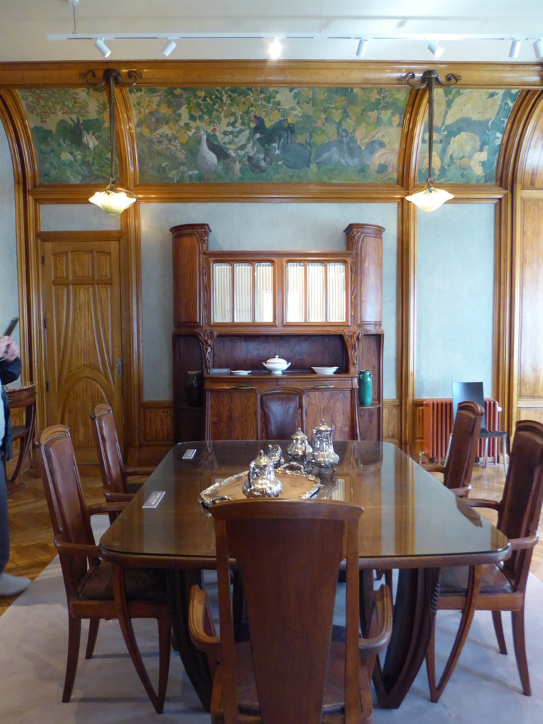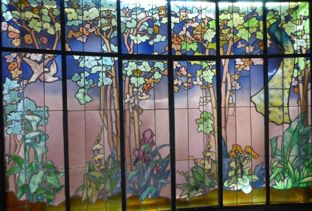 Attraversiamo il quartiere adiacente all’università, molto elegante, con bellissime abitazioni, bowindows dove vorresti sedere a leggere un libro sulle belle poltroncine illuminate dal sole tra le piante verdi, giardini delicatamente fioriti…. Arriviamo alla stazione della metropolitana (che a Glasgow ha solo due linee che corrono vicine, una in senso contrario all’altra ; il sistema di chiusura delle porte non è automatizzato nel senso che è l’autista che si affaccia dal finestrino e chiude le porte quando tutti sono saliti ) e corriamo nel Southside, il quartiere a sud del fiume Clyde, dove all’interno dell’Art Park nel 1989 è stata costruita la House for an Art Lover, seguendo il progetto originale di Mackintosh del 1901. L’edificio ha l’intento di stimolare l’interesse per l’arte, il design e l’architettura : vi si organizzano anche eventi pubblici o privati. Il corridoio monumentale è scuro, con nicchie che fiancheggiano le finestre per conversazioni private ; vediamo poi la Oval Room sala destinata al riposo delle signore (Mackintosh ritiene che chiacchiere, relax e concentrazione necessitino di spazi diversi per uomini – spazi scuri – e donne – spazi bianchi e pieni di luce ) : infatti la stanza è bianca, e tutto segue le sue linee ovali e morbide, con due nicchie ai lati di una enorme finestra illuminata dal sole ; arriviamo poi alla Music Room, una enorme sala destinata a feste, con enormi porte finestre convesse illuminate dal sole e una bellissima balconata dalla quale ammirare lo splendido giardino , che con i suoi elementi stilizzati vuole ricordare una radura tra gli alberi , con il pianoforte contenuto in un grande letto a baldacchino ; si finisce poi con la Dining Room di nuovo scura . Tutto molto bello, ma un po’ impersonale e “da cerimonia”, poco famigliare: gli spazi così dilatati tolgono (o sono in contraddizione) con l’ intimità e la semplicità (del tutto apparente) che è uno dei caratteri che amo di più in questo architetto …