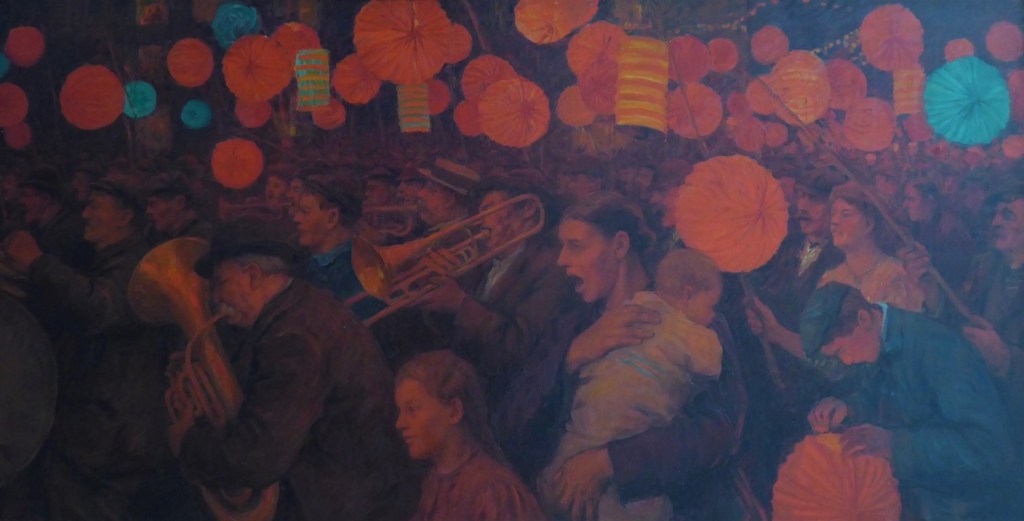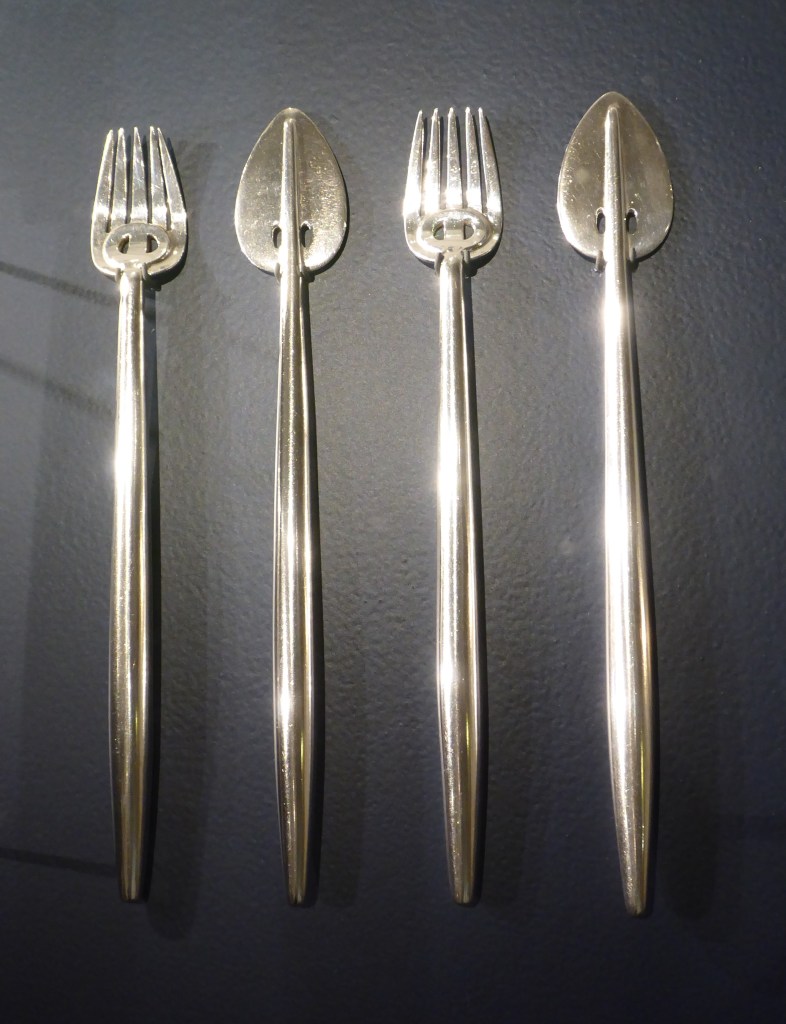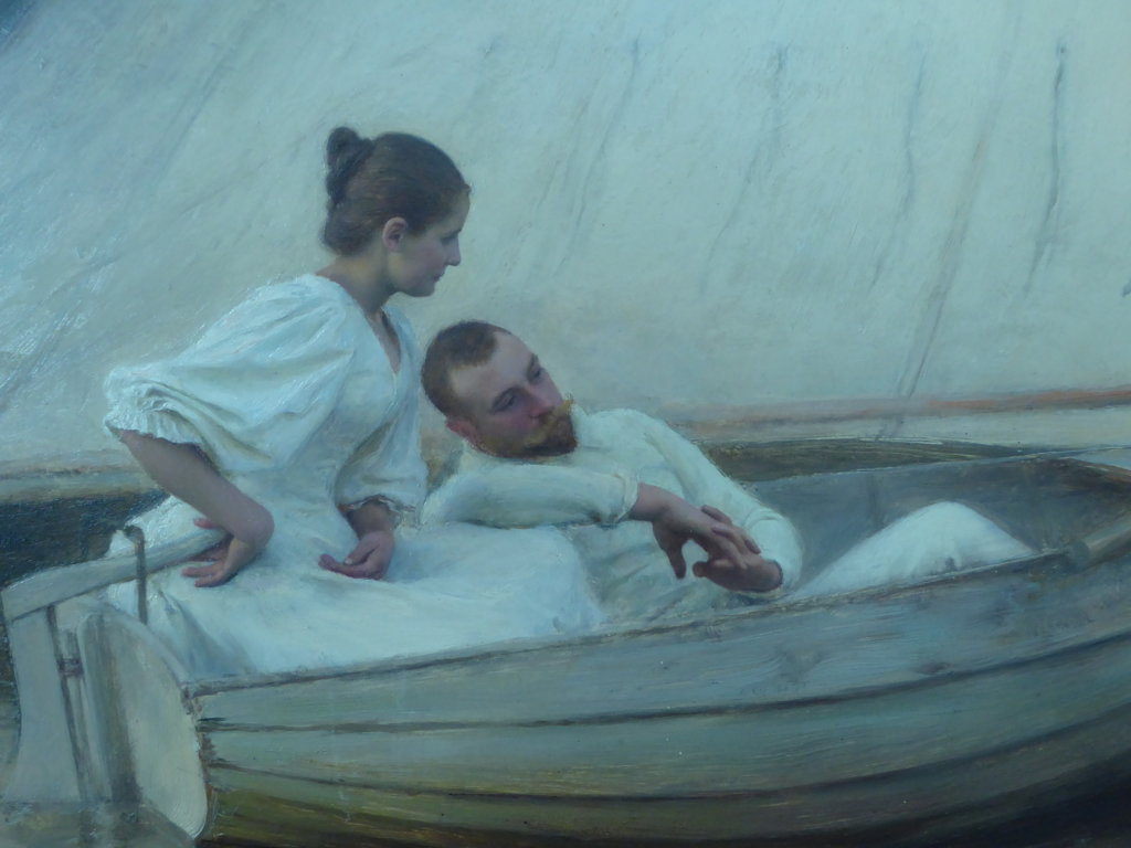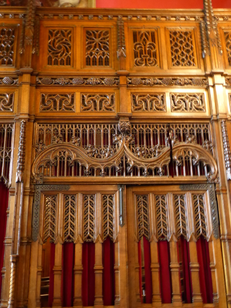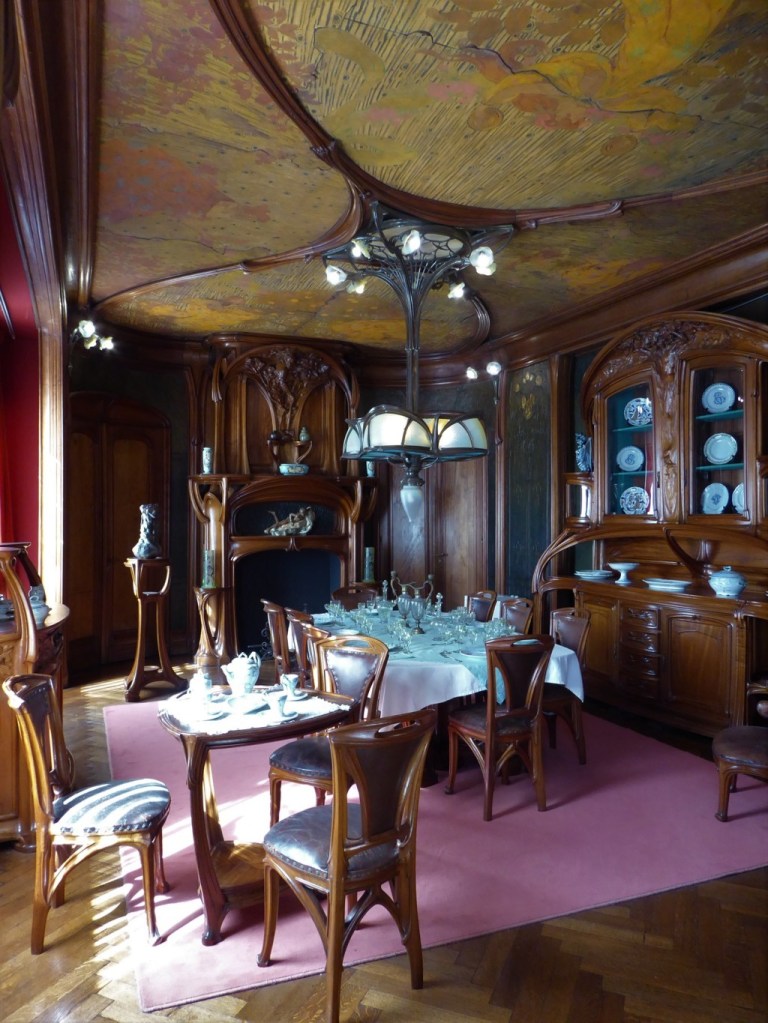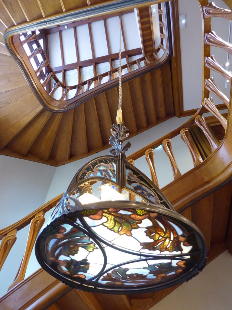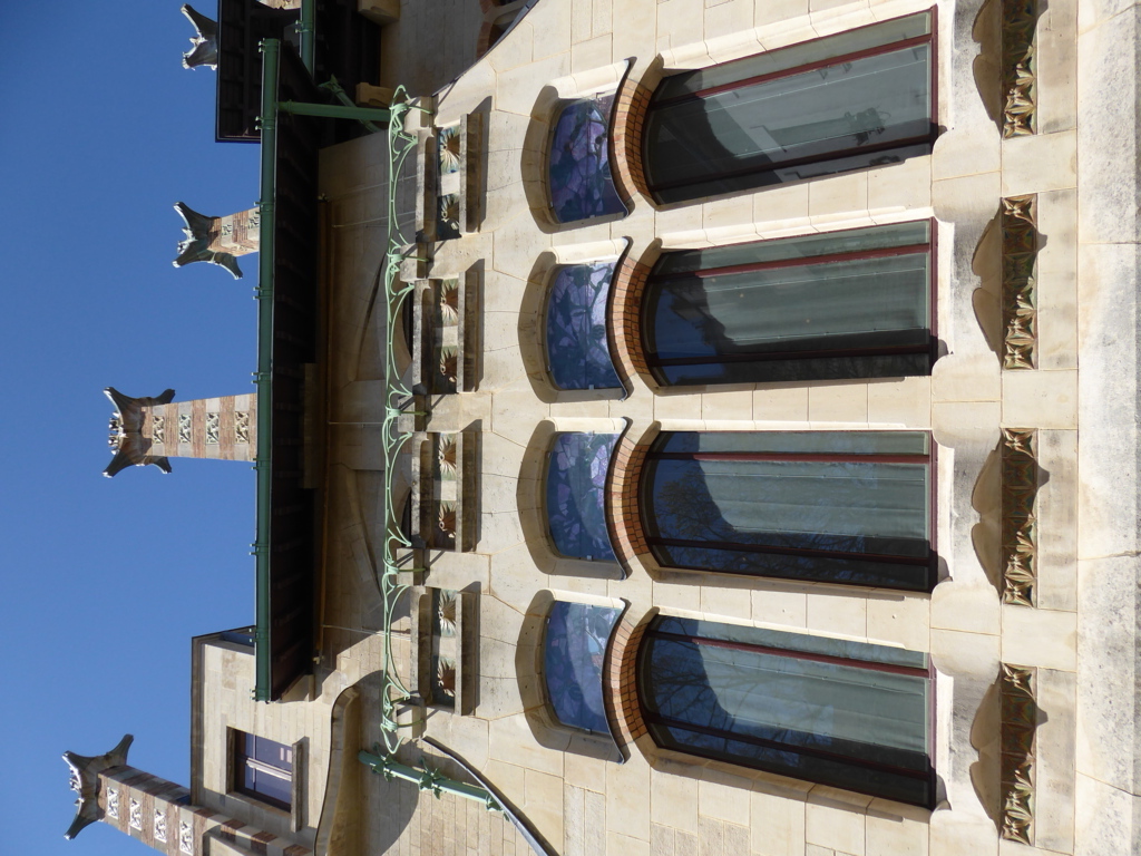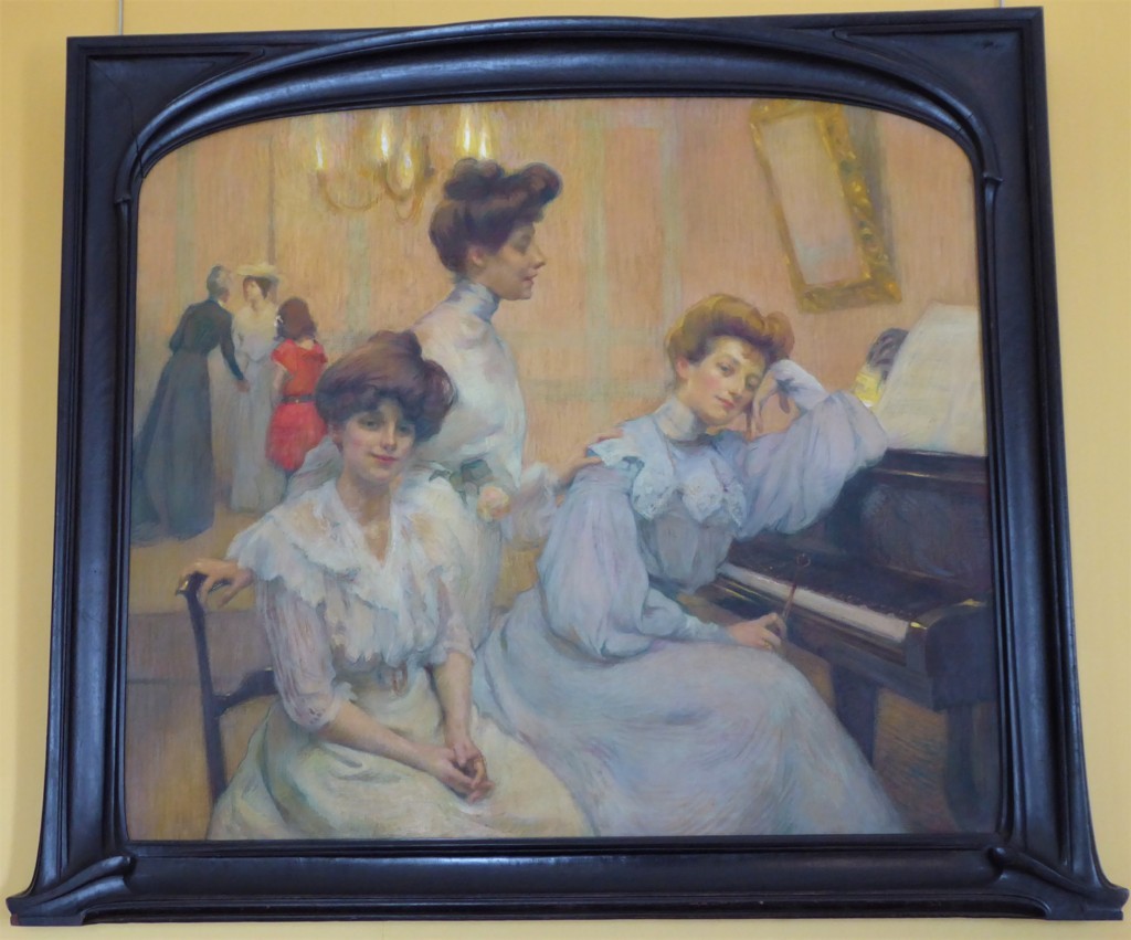 Attraversiamo il quartiere adiacente all’università, molto elegante, con bellissime abitazioni, bowindows dove vorresti sedere a leggere un libro sulle belle poltroncine illuminate dal sole tra le piante verdi, giardini delicatamente fioriti…. Arriviamo alla stazione della metropolitana (che a Glasgow ha solo due linee che corrono vicine, una in senso contrario all’altra ; il sistema di chiusura delle porte non è automatizzato nel senso che è l’autista che si affaccia dal finestrino e chiude le porte quando tutti sono saliti ) e corriamo nel Southside, il quartiere a sud del fiume Clyde, dove all’interno dell’Art Park nel 1989 è stata costruita la House for an Art Lover, seguendo il progetto originale di Mackintosh del 1901. L’edificio ha l’intento di stimolare l’interesse per l’arte, il design e l’architettura : vi si organizzano anche eventi pubblici o privati. Il corridoio monumentale è scuro, con nicchie che fiancheggiano le finestre per conversazioni private ; vediamo poi la Oval Room sala destinata al riposo delle signore (Mackintosh ritiene che chiacchiere, relax e concentrazione necessitino di spazi diversi per uomini – spazi scuri – e donne – spazi bianchi e pieni di luce ) : infatti la stanza è bianca, e tutto segue le sue linee ovali e morbide, con due nicchie ai lati di una enorme finestra illuminata dal sole ; arriviamo poi alla Music Room, una enorme sala destinata a feste, con enormi porte finestre convesse illuminate dal sole e una bellissima balconata dalla quale ammirare lo splendido giardino , che con i suoi elementi stilizzati vuole ricordare una radura tra gli alberi , con il pianoforte contenuto in un grande letto a baldacchino ; si finisce poi con la Dining Room di nuovo scura . Tutto molto bello, ma un po’ impersonale e “da cerimonia”, poco famigliare: gli spazi così dilatati tolgono (o sono in contraddizione) con l’ intimità e la semplicità (del tutto apparente) che è uno dei caratteri che amo di più in questo architetto …