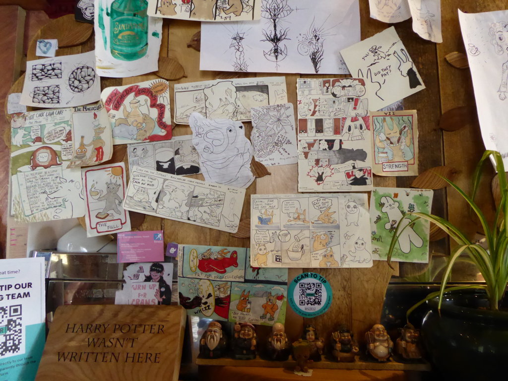 Abbiamo avvistato anche un bellissimo bar-libreria (The Book Nook ) da ricordare : decidiamo infatti di non prolungare la permanenza oltre quanto programmato, e di ritornare – non so se in questo viaggio – per visitare il castello (e il suo ristorante, che serve una buona zuppa del giorno) , il Wallace monument ; d’altronde Stirling – per la sua posizione strategica al centro dell’inizio della Scozia – è una tappa obbligata di ogni itinerario possibile. Adesso il nostro programma è piuttosto serrato, e non ci consente divagazioni o ritardi, soprattutto per l’intenzione di affrontare la mitica North Route 500 che ci porterà a percorrere tutte le coste della regione impervia delle Highlands (più di 800 km su one ways) . E’un percorso mitico , che si presenta come un monolite e richiede almeno una settimana : una volta che la inizi , diventa difficile tornare indietro, e ci sono anche poche occasioni per abbandonarla prima del termine. Quindi anche per oggi : nanna, dopo aver recuperato un bell’ombrello a doppio telo abbandonato nel parcheggio, che potrebbe rivelarsi utile nel clima scozzese : pioggia, sole, pioggia/sole, vento, vento/pioggia, arcobaleno/sole, luna/stelle. Buonanotte.