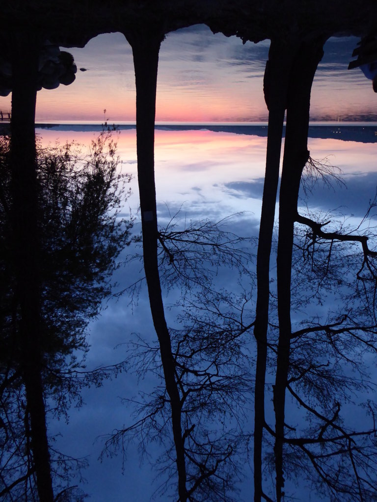 Abbiamo percorso più volte la splendida ciclabile che congiunge Aquileia a Grado, attraversando prima le aree archeologiche, poi la verde e rigogliosa campagna , la splendida laguna punteggiata da numerosi isolotti rigogliosi , tanto piccoli da poter ospitare una sola abitazione, casoni dal tetto di paglia , chiesette, o anche solo un pollaio con orto . La laguna ha orizzonti sempre mutevoli ed è animata da un respiro costante e nascosto : il cielo e la luce ricamano sempre mutevoli riflessi, in un’acqua apparentemente tranquilla, ma sempre percorsa dal fluire delle maree, che condiziona anche gli orari del battello che congiunge Aquileia a Grado.