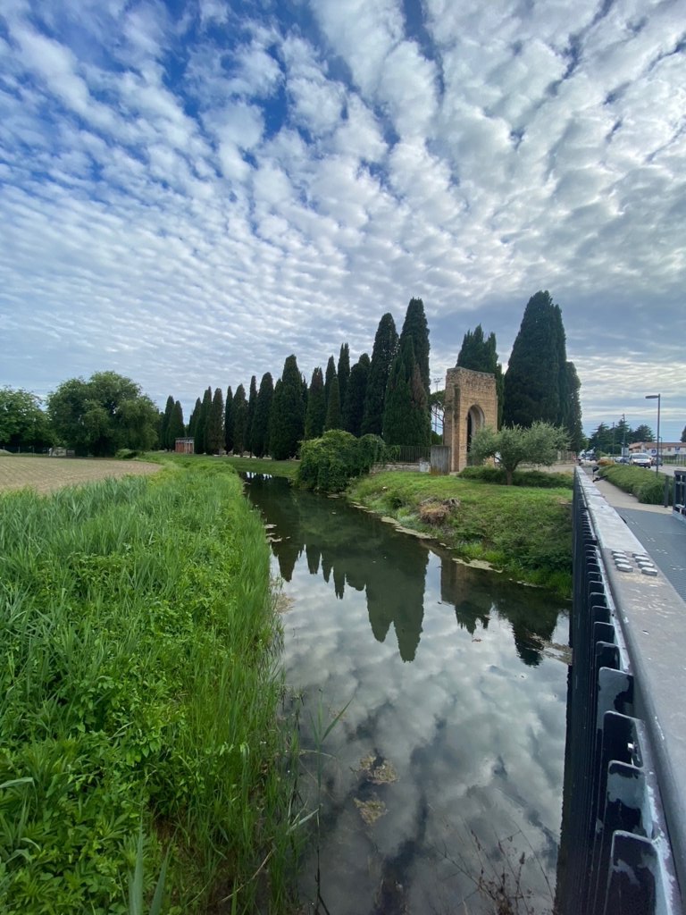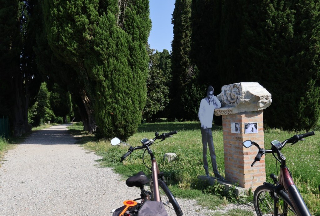 Il territorio è bellissimo : una catena di colline visibili all’orizzonte abbraccia una pianura verdissima , che scivola nella grande e tranquilla area lagunare, dove il cielo riverbera mille e mille riflessi, immobili o in lento movimento. E mi sono ricordata delle descrizioni di questa terra e di questa gente fatte da Pier Paolo Pasolini, che il territorio ricorda e mantiene presente e viva : infatti ad Aquileia, all’ingresso del porto romano, ci accoglie Pier Paolo Pasolini, che tanto ha parlato di questa terra e di questa gente.