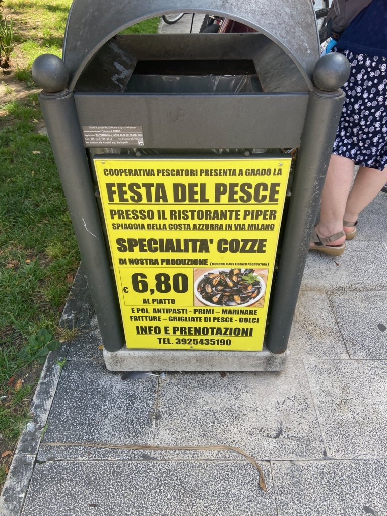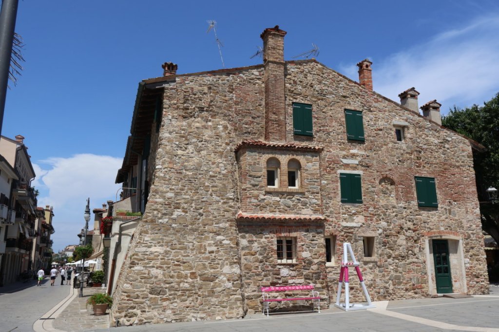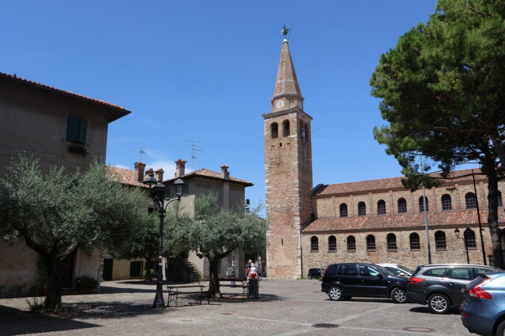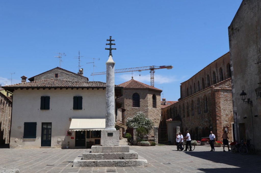 Grado, località turistica e termale conosciuta anche come Isola d’Oro o Prima Venezia o Isola del Sole, è nata in epoca romana come scalo mercantile di Aquileia : deve proprio il suo nome ai gradoni che agevolavano lo sbarco dei passeggeri e delle merci dalle navi. Nel nostro girovagare poco organizzato, ci ha colpiti l’ animato centro cittadino, e la splendida passeggiata sul lungomare (ci sono 11 km di spiagge) . Nel IV secolo venne costruito il suo Castrum, il centro storico medioevale dove trovarono rifugio le popolazioni dell’entroterra scampate all’assalto dei barbari , con campi e campielli in stile veneziano ( anche Venezia nascerà e sarà fondata dall’esodo degli Aquilesi scacciati dalle invasioni barbariche ) ; le sue belle chiese ( la Basilica di Sant’Eufemia con il suo bellissimo pulpito , il Battistero ed il Lapidarium, e in cima al campanile l’arcangelo giravento Sn Michele , l’Anzolo che è diventato il simbolo della città vecchia ; la più piccola ed antica Basilica di Santa Maria delle Grazie ) ; la bella Casa della Musica uno degli edifici più antichi affacciata sul Largo della Vittoria con resti romani .