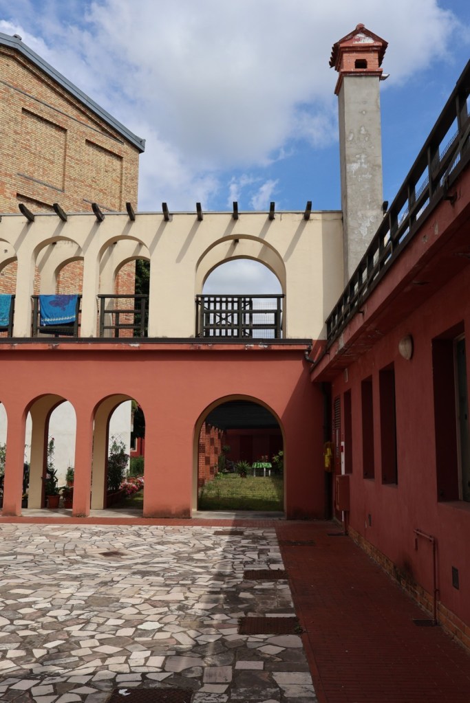Al termine della visita recuperiamo gli zaini : ancora rapita dalla visita, mentre scendo la scala che conduce al sotterraneo, perdo una ciabatta che cade nella tromba delle scale ed inizia una impressionante parabola di caduta in verticale con un’energia incomprensibile ed un equilibrio impressionante : dopo un volo di tre piani alti che le fa acquistare una certa accelerazione cade piatta con un tonfo che rimbomba fragorosamente… una deflagrazione. Gli attimi della caduta sembrano un misto tra oggi le comiche e un film dell’orrore con visioni di persone tramortite sul fondo : si tratta di quegli attimi che sembrano eterni, durante i quali riesco a vedere le facce sbalordite della Jessica e di Gabriele che – all’altezza del primo piano- osservano il volo discendente della ciabatta come al rallentatore e iniziano a ridere. Per un attimo penso di aver ammazzato qualcuno : ma avrebbe fatto meno rumore.