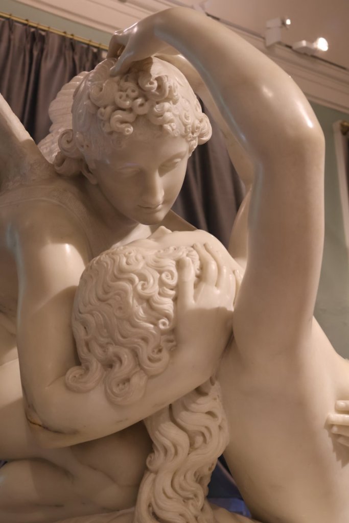 E così, una visita sola non è stata sufficiente : oggi abbiamo voluto portare – e porteremo ancora nelle prossime settimane – i nostri amici ad ammirare tanta bellezza. I baci appassionati, gli abbracci dolcissimi, gli sguardi languidi, orgogliosi o frementi che affollano le stanze antiche ; le lacrime del rimpianto scolpite nel marmo ; una statua che sembra animarsi e travolge il suo creatore, l’attonito Canova che non riuscirà più a separarsene ; l’azione scolpita e fermata per l’eternità in semplici e sapienti gesti pieni di tenerezza ; le forme perfette degli Dei dell’Olimpo che scendono nelle nostre vite e ci circondano … E le antiche stanze improvvisamente si animano di presenze eterne, che sembrano parlarci : ci dicono che le più profonde esperienze umane attraversano immutate il tempo ed i territori, come frecce capaci di colpirci al cuore.