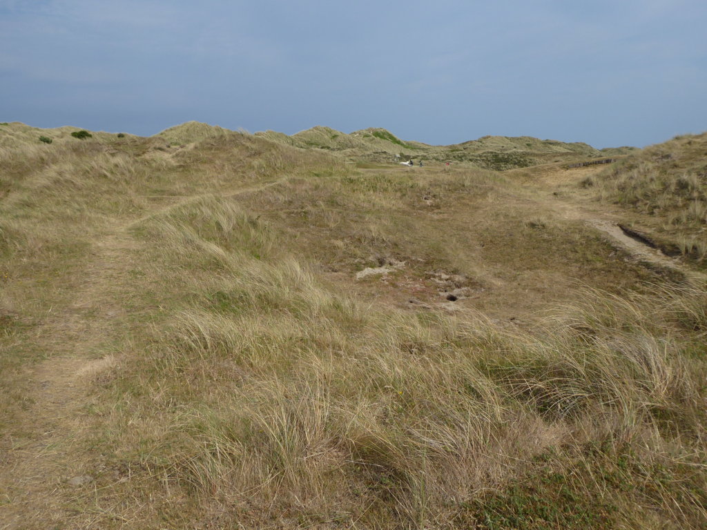 Riprendiamo il percorso per tornare al campeggio, rinunciando alla possibilità del bus (che arriva solo tra 1 ora) ; lungo un tratto di strada senza marciapiede e piuttosto pericoloso, un automobilista gentilissimo dopo averci sorpassato si ferma, ci aspetta e ci indica un percorso sicuro attraverso i campi . Qui sembra che il senso della comunità esista e rappresenti un pilastro importante della vita sociale. Il sentiero che ci ha indicato è bellissimo : in mezzo a campi di grano dorato che ondeggiano al vento e luccicano al sole ancora bagnato dalle gocce d’acqua e ci regala un’ora di pura felicità, uno di quei momenti in cui entri in risonanza con la meraviglia del mondo che ti circonda . Torniamo al campeggio e ripartiamo diretti alla prossima meta: la Holme Dunes Nature Reserve di Brancaster . Arriviamo alle 7, quando oramai il centro visite è chiuso : ci siamo solo noi e pochi altri passeggiatori sull’altro lato del canale che si apre una strada ramificata fino al mare . Ci godiamo il sentiero della passeggiata sulle dune affacciate al calar del sole .